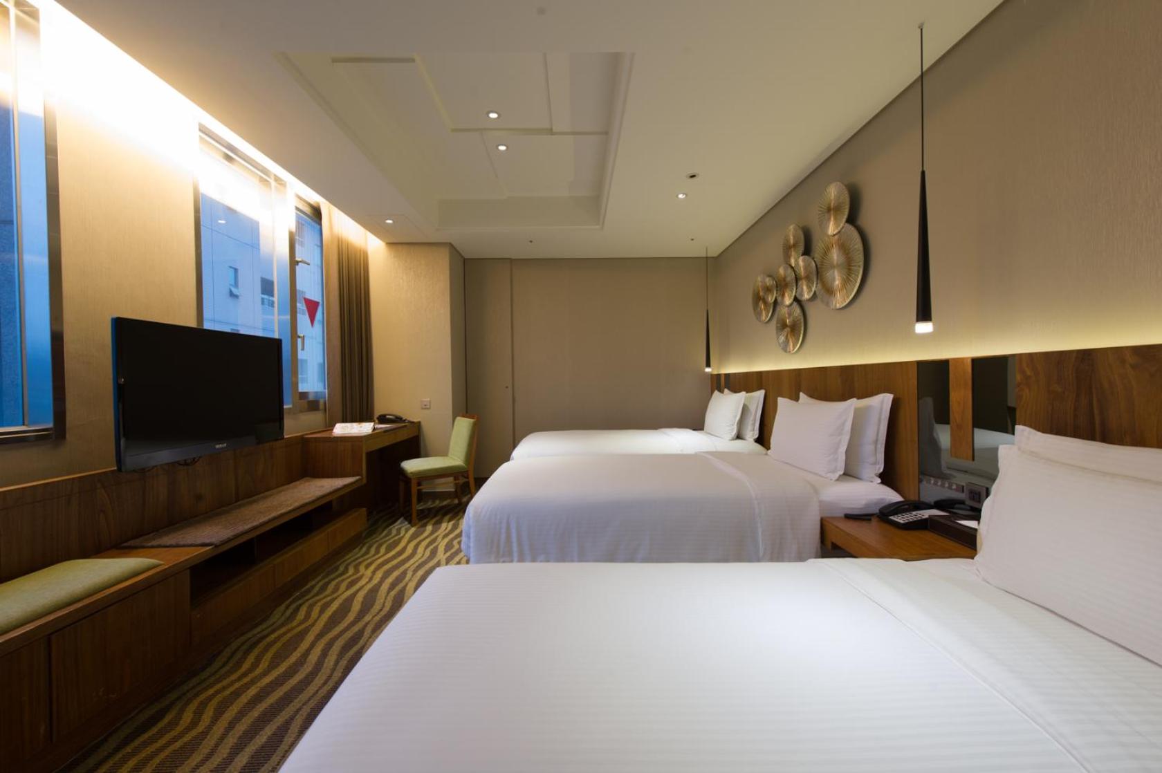 The air-conditioned rooms are equipped with a flat-screen TV, free Wi-Fi, and a minibar. Guests can enjoy city views from select rooms and relax in the spacious en suite bathrooms.
