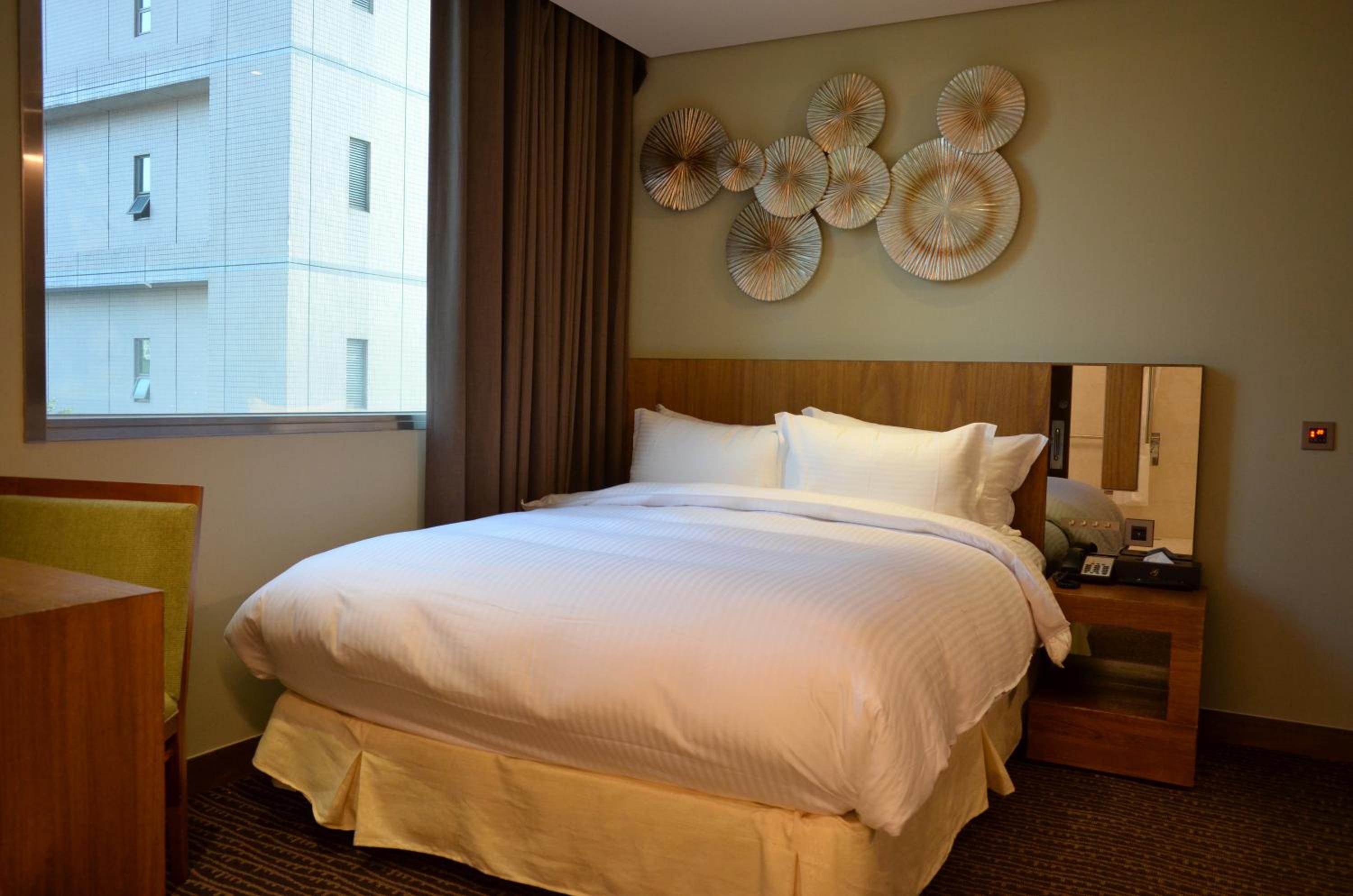 The room size was good and had a lovely bathroom with a bath. Nice views of the city and comfortable bed. Convenient location from Dann park and easy bus / metro access. Breakfast was nice, had Taiwanese pancake and coffee.