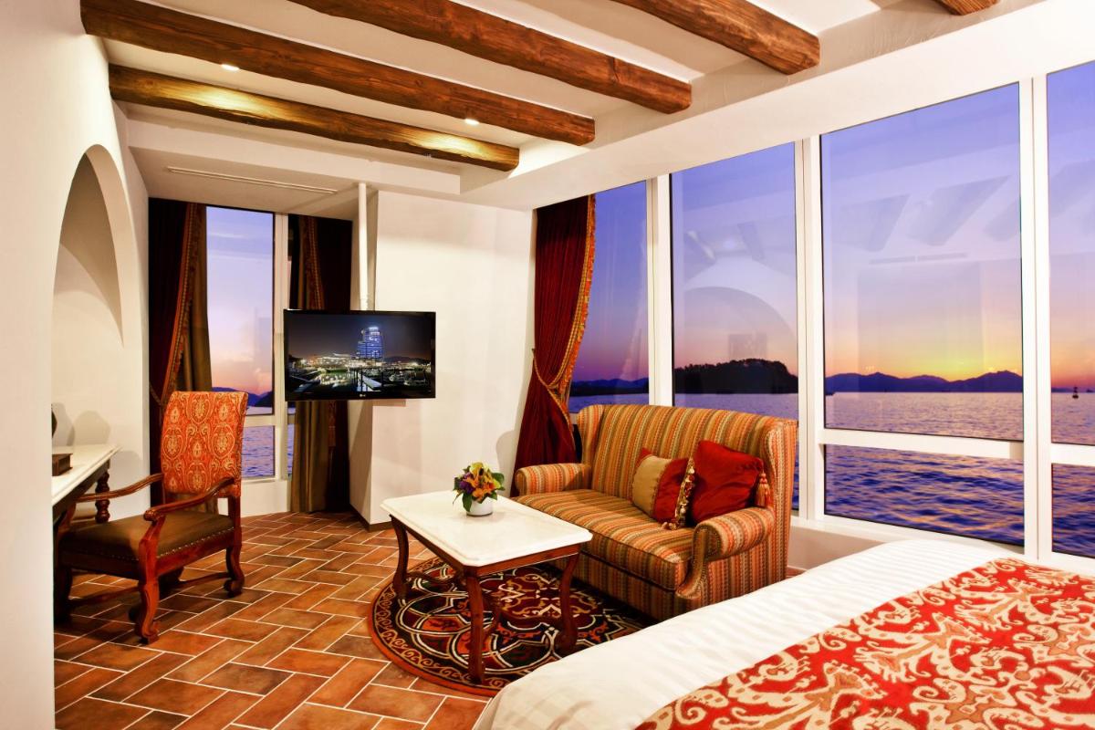 Experience breathtaking sea views from the comfort of your room with floor-to-ceiling windows. Each room is equipped with modern amenities including a flat-screen TV, minibar, and a work desk for your convenience.