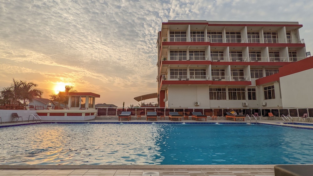 passé deux nuits : très bruyant (cérémonies près des chambres et groupe électrogène en prenant le petit déjeuner...). Pas d'ascenseur et beaucoup de marches, petit déjeuner pas mal surtout avec fruits mais consignes à revoir (une personne à sorti mes toasts avec sa main pour les déposer sur la table!). Pas d'attache douche, porte de la chambre difficile à ouvrir ... Beau jardin cependant !