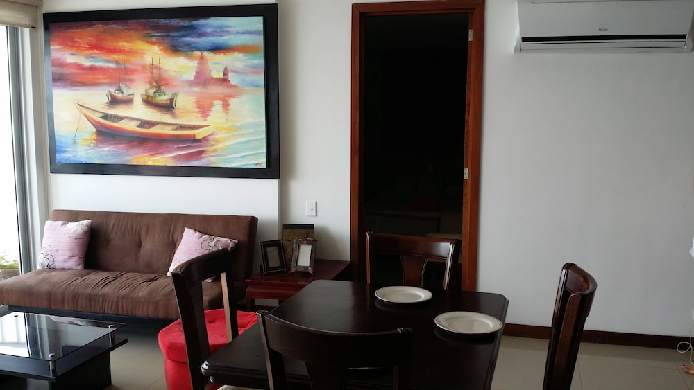 Positivo: Em frente a praia. Apto amplo e com bela vista do mar. Proximo ao comercio e Super Mercado. Taxi eh barato mas usemos UBER. Negativo: Apto com excelentes moveis mas necessita de manutencao "ferrugem Maresia". Chuveiros a gaz nao esquentavam e foi necessario chamar tecnico. Arrumacao e troca roupa de cama e tolhas so ocorrem se pedir por Whatsapp ao proprietario. No checkin proprietario exige pagamento da diferenca das diarias em especie na moeda local COP$ (nao aceita cartao credito), so depois de muito implorar.