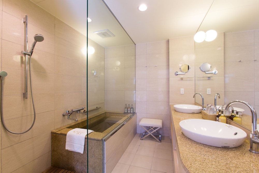 very convenient location, spacious and modern room, friendly service, onsite onsen.