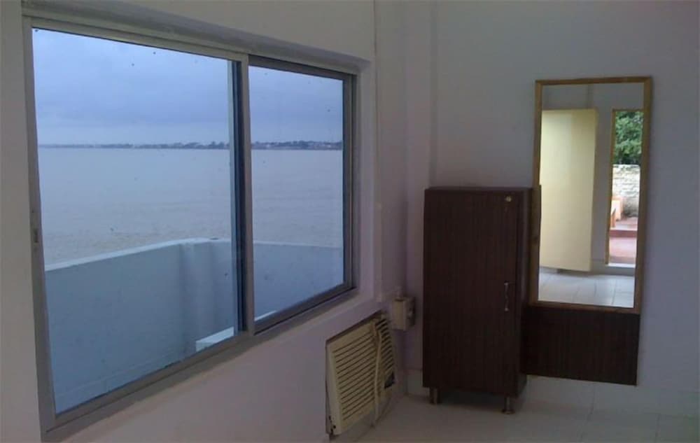 Perfect location to take a look and get to the Ghat and River. People are very kind and helpful. Hot shower and A/C are available. River viewing room has many flying bugs and a monkey got into my room through open door to Balcony and take my foods. hahaha. Have fun with bugs gecko rizard and monkey!!! One big problem was my big baggage could not be trolled myself coz too long, narrow and dirty corridor from the circle.