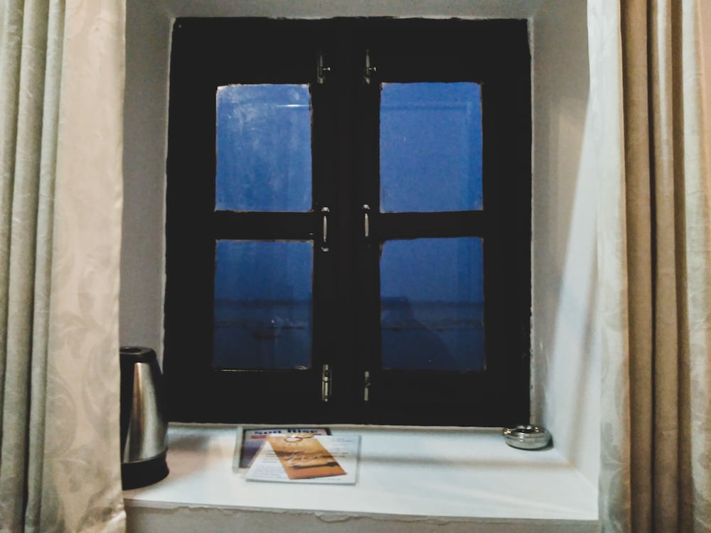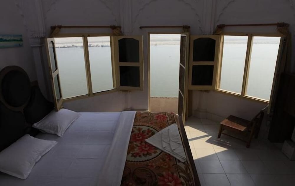Fabulous old building overlooking the Ganges. We were given the two best rooms as hotel was quiet. Amazing views & location. Rooms & bathroom quite tired, but if improved the hotel would be much more expensive. Staff very helpful. Food fantastic & served in a prime spot overlooking the Ganges. Network of narrow lanes to get to the hotel from the main road. Help given to carry our bags to the hotel avoiding motorbikes & the odd cow on the way.