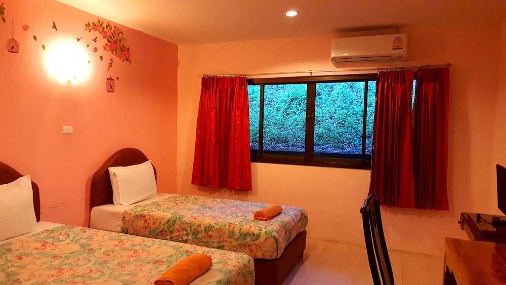 We stayed for one night at Baan Suan Sook and was very please with our room & it's beautiful green surroundings. The staff were extremely friendly & helped us to book ferries etc to Ko Phagnan. Location was ok & we came across a very good Thai market across the road & grabbed some amazing street food, jewellery & culture!