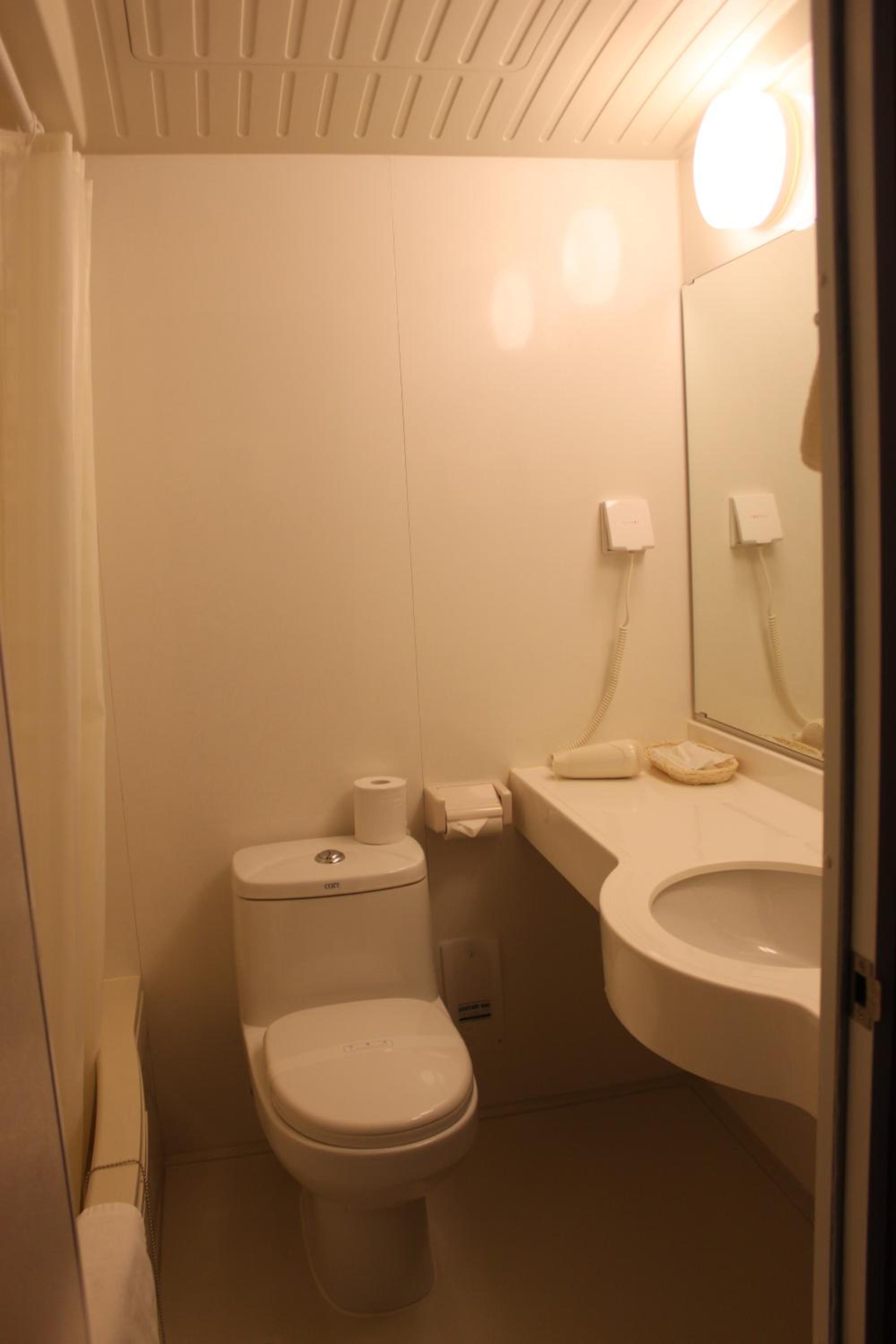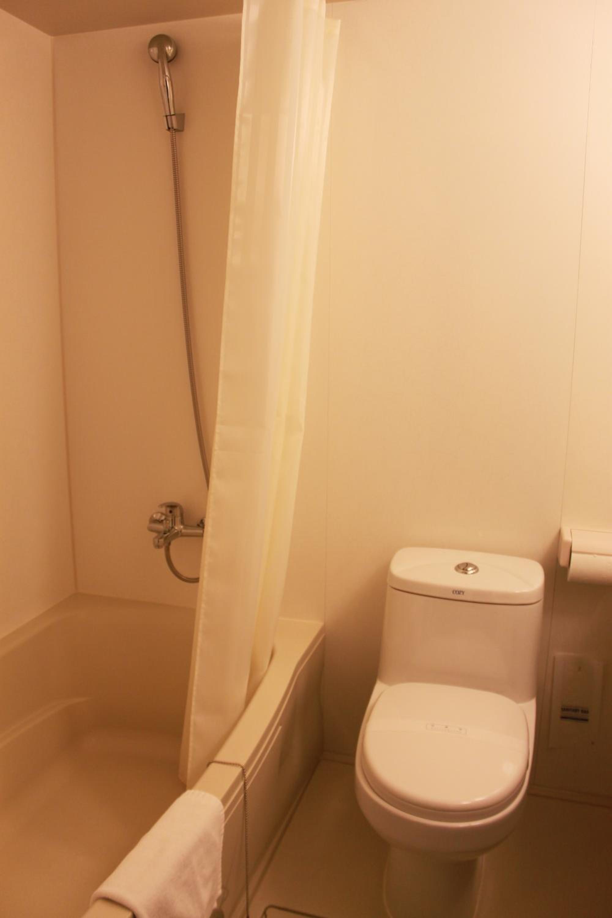 The contemporary rooms are thoughtfully equipped with LCD TVs, twin beds, and complimentary green tea. Guests can enjoy free wired internet, free toiletries, and nightwear, ensuring a comfortable stay.