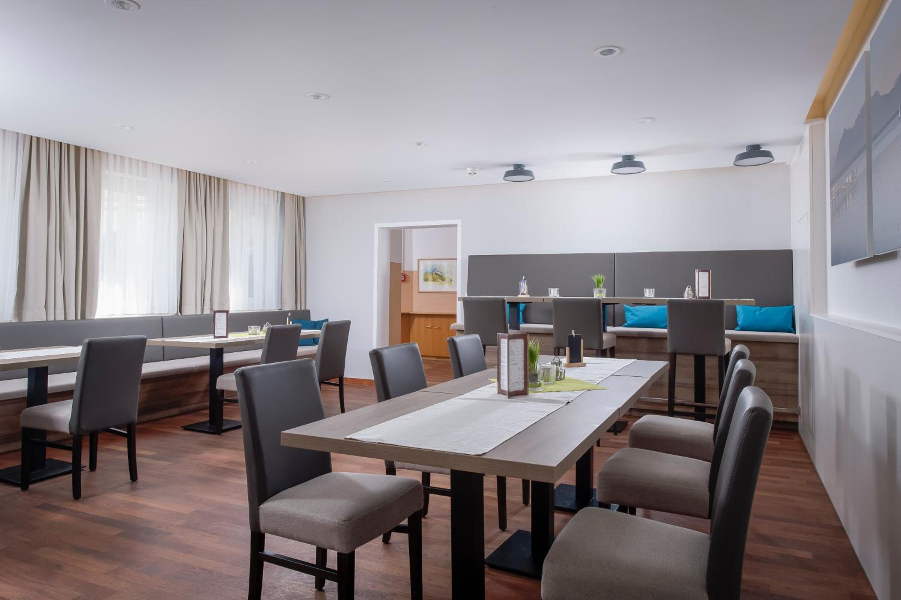 Start your day with a hearty buffet breakfast in the elegant restaurant, showcasing Bavarian and Tyrolean dishes. Enjoy the culinary delights in a charming setting with domed ceilings and exposed brick decor.