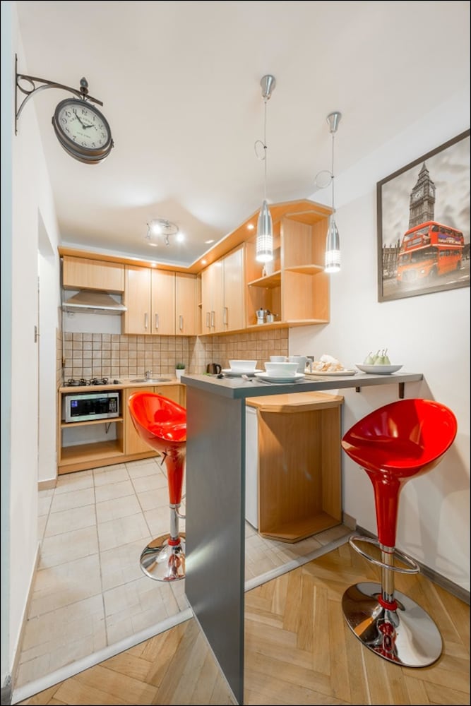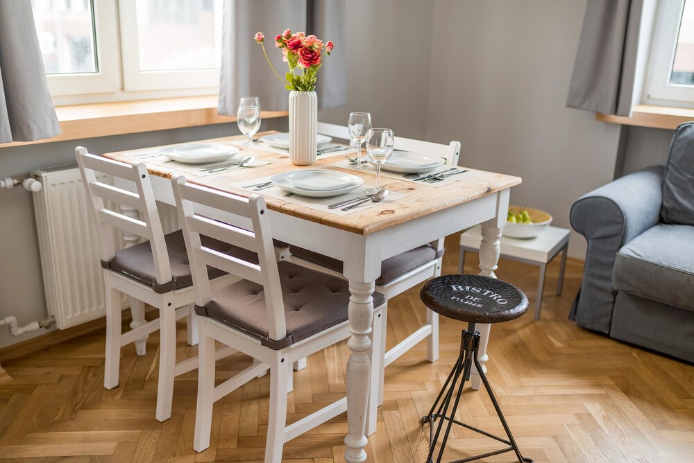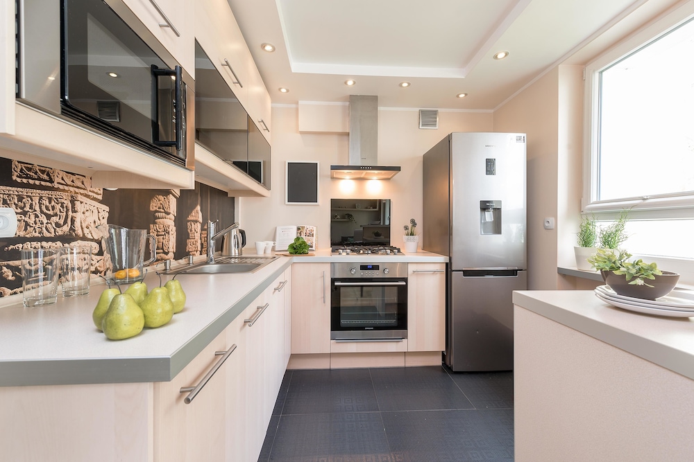 The location of your apartment is a mystery until you check in. It is not easy to find the random apartment they use as a front desk due to poor marking. After receiving my keys I was gievn a strip map to my apartment. Although the check in place is right at Old Town, my apartment was in a different part fo the city altogether. I had to walk with bags and 2 small kids for over a mile to get to our place. I wouldn't have wlaked but the staff told me that it was less than 10 minutes on foot. Apparently they walk really really fast in Poland. The apartment was OK and the kitchen and bathroom were good. The beds was decent but the pull out couch bed, wasn't. It was just a couch with a foot rest that you could lay on. I booked for a family with small children and received a flat at the end of a log walk. And for those of you not making the connection, that means a long walk or paying for a taxi every time I wanted to go see the sights or come back to my apartment. Don't waste your time with this one.