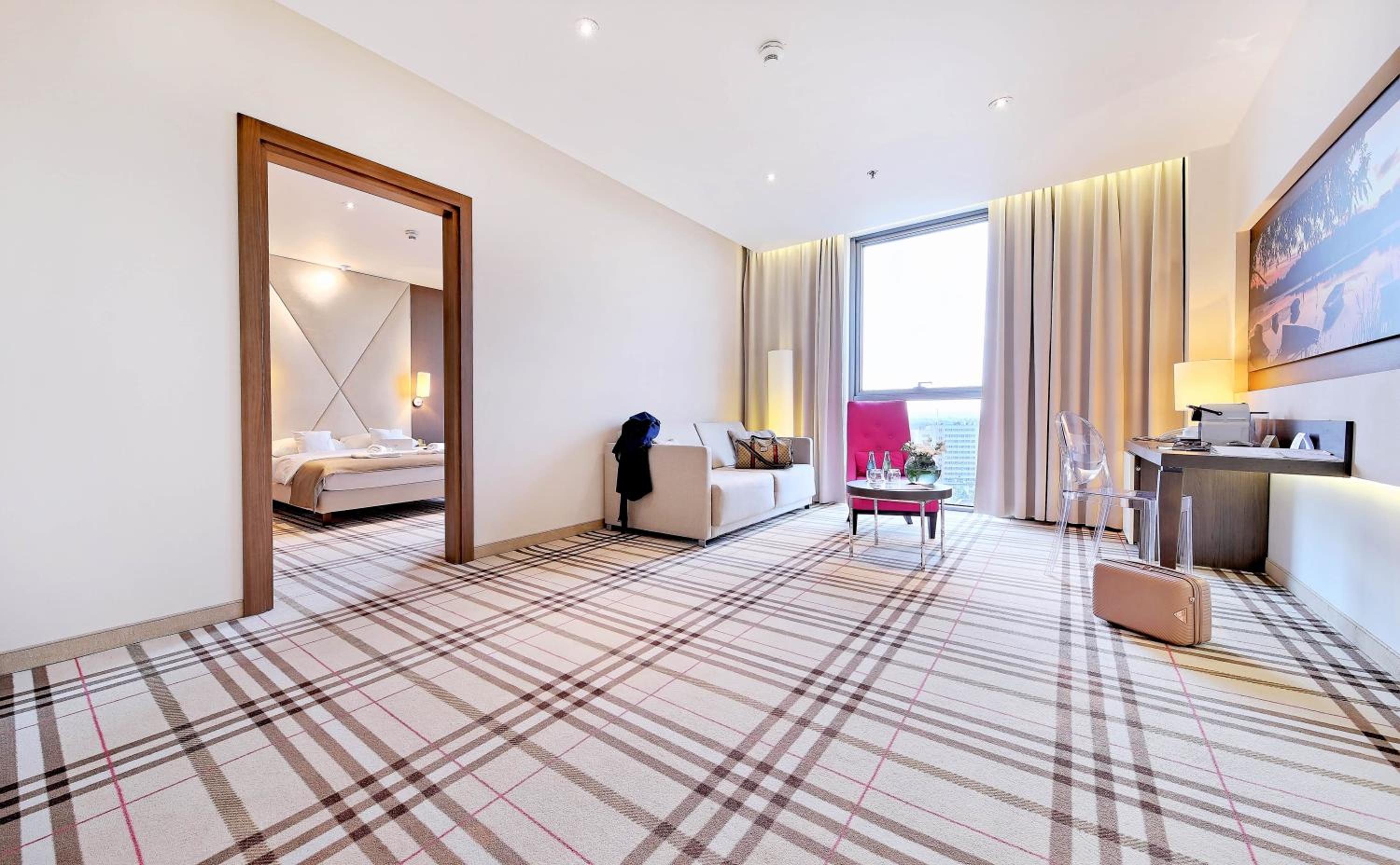 Elegant Rooms with City Views: Experience stylish, carpeted rooms at Hotel Rzeszów, equipped with modern amenities including air conditioning, satellite TV, and complimentary toiletries. Enjoy picturesque views of the city right from your window.