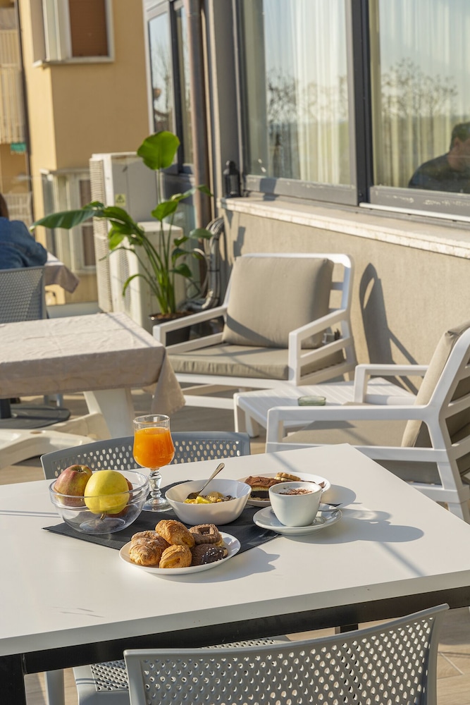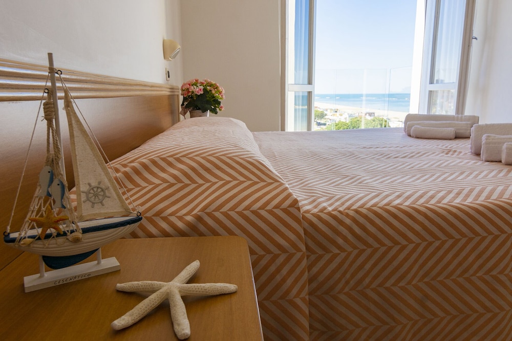 The hotel itself is outdated with f.ex. no shower cubicles, which is somewhat messy. But if you can live with that, the location is great. Just next to the beach and in walking distance from the beautiful city center of Cesenatico. The staff is extremely helpful and polite – and the breakfast is surprisingly good, considering the price. If the owners would decide to update the rooms, especially the bath rooms, it could really be a great place to stay.