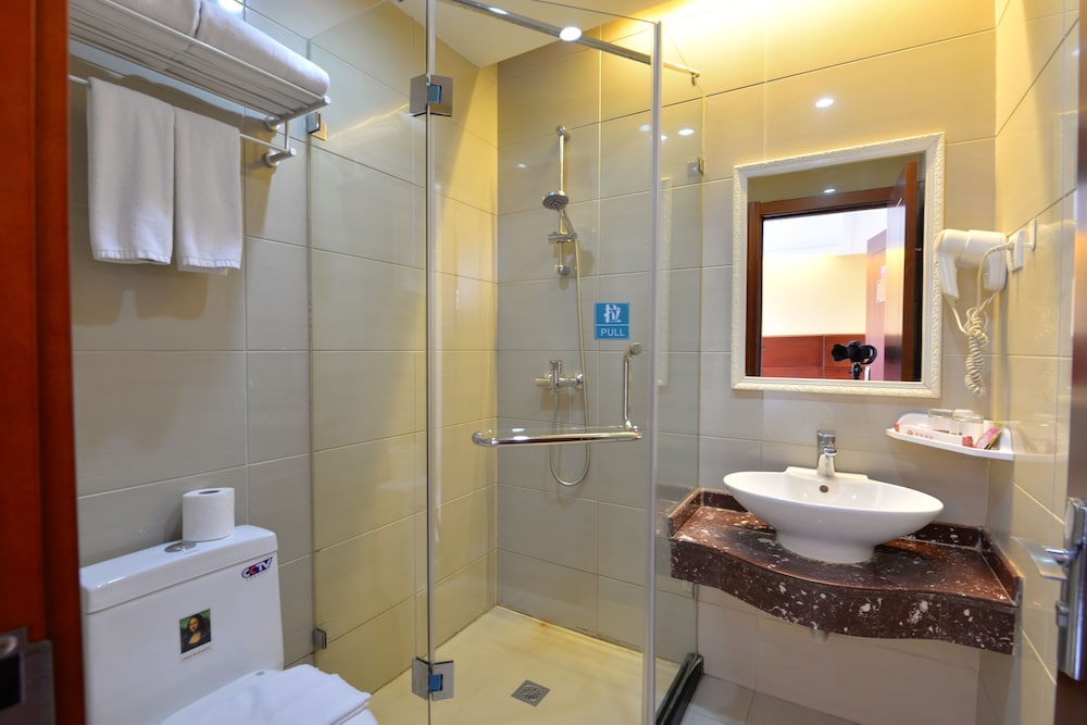 Clean basic hotel in suburb conveniently close to shopping mall with carrefour supermarket. Basic chinese breakfast with no fruit and artificial "orange" juice. Very helpful staff.