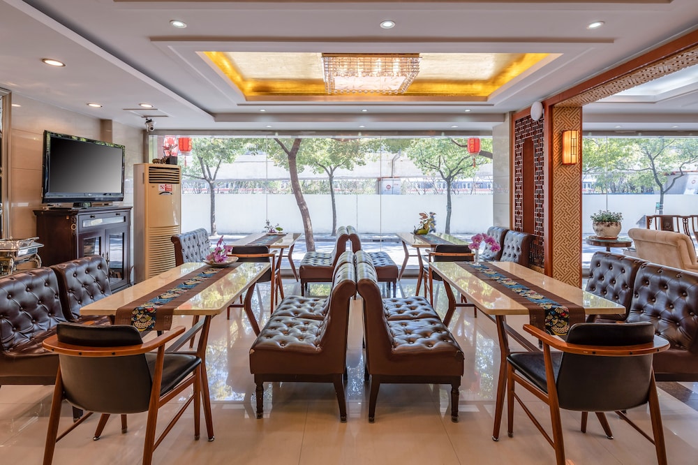 The staff was very friendly and nice with helping you find things in the area. The beds are a little hard, and the rooms are a bit small, but we didn't spend much time in there so it was perfect for us. The hotel is located just 1 block from the metro and perfect for touring the city. There are several good places to eat, shop, and get coffee right next to the hotel. The hotel room had air conditioning, and a nice spacious bathroom. We did the family room for my husband and brother as we were visiting family in the city. I recommend bringing a pad of your own (like a camping pad) if you are worried about beds being hard in China, as many of them were. This hotel had down comforters and overall a lovely experience. The staff was amazing, we only ate the breakfast 1 day and it was noodles, rice pudding, cabbage, and breads. Not too bad.
