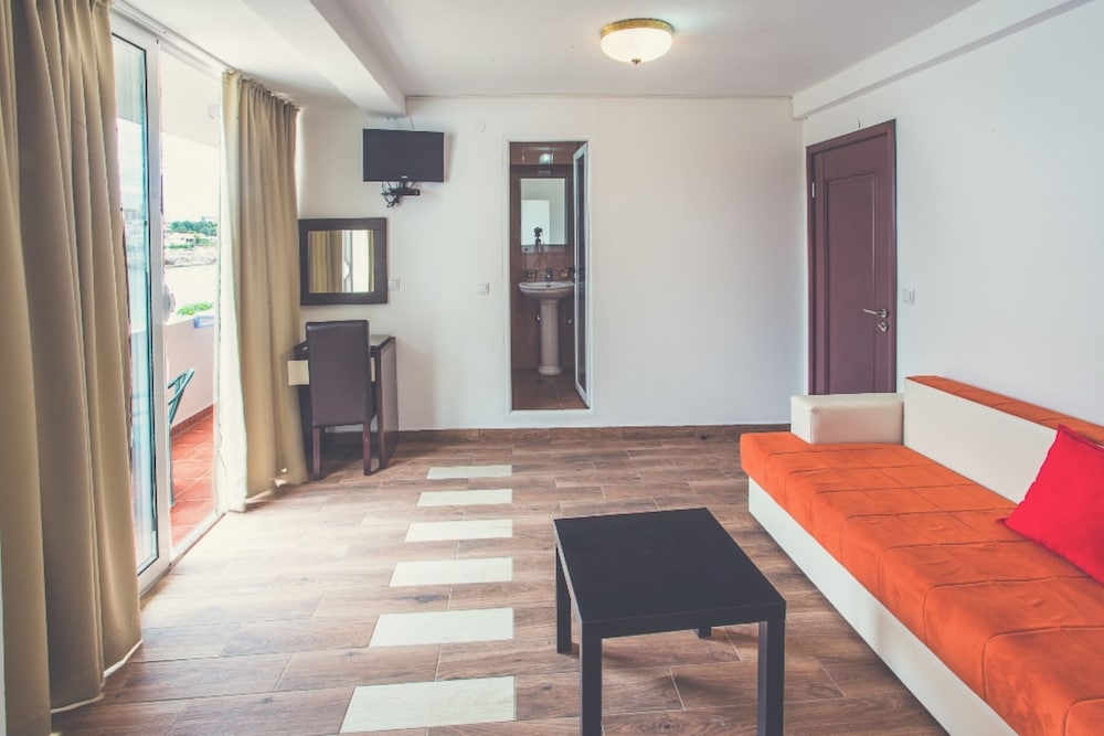 Aufenthalt war eine Katastrophe, Rezeption absolut unfreundlich. Kaum hatten wir eingecheckt, wurden wir ins NEBENGEBÄUDE verfrachtet, 3. Stock ohne Lift (wir mit 2 Kindern und Kinderwagen). Das Zimmer war eine absolute Katastrophe, es hat aus dem Bad extrem nach Urin/Stuhl gestunken. Wir haben unsere Sachen gepackt und haben direkt ausgecheckt, da dies eine absolute Zumutung war. Balkon noch dazu direkt teilen mit den Zimmernachbarn. Pool und Poolplatz war dreckig und klein. Lasst euch von den Bildern nicht täuschen! Es gab keine Refundierung, obwohl wir direkt nachdem wir das Zimmer gesehen haben wieder ausgecheckt haben. Rezeption schreibt per Viber mit dem "Manager", das auch eine Privatkonversation hätte sein können. Manager lässt sich nicht blicken. Arrogante Rezeptionistin, also sowas hab ich bisher noch NIE erlebt. NIE wieder geh ich dahin und rate allen anderen es auch sein zu lassen.