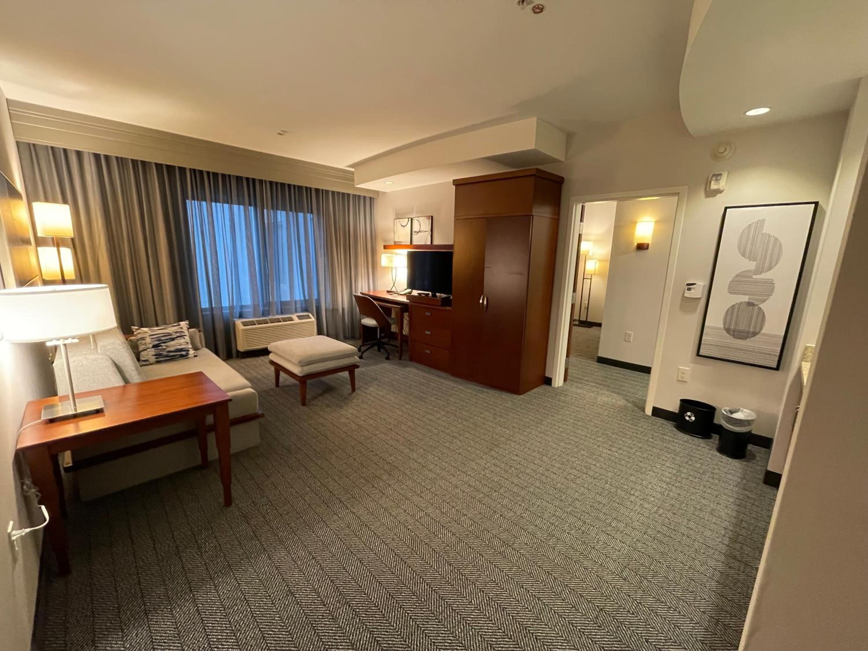 The hotel was very clean and comfortable. The staff was very professional and friendly. Walking distance to where we needed to be and driving distance to where we wanted to go. It is also surrounded by other great food options.