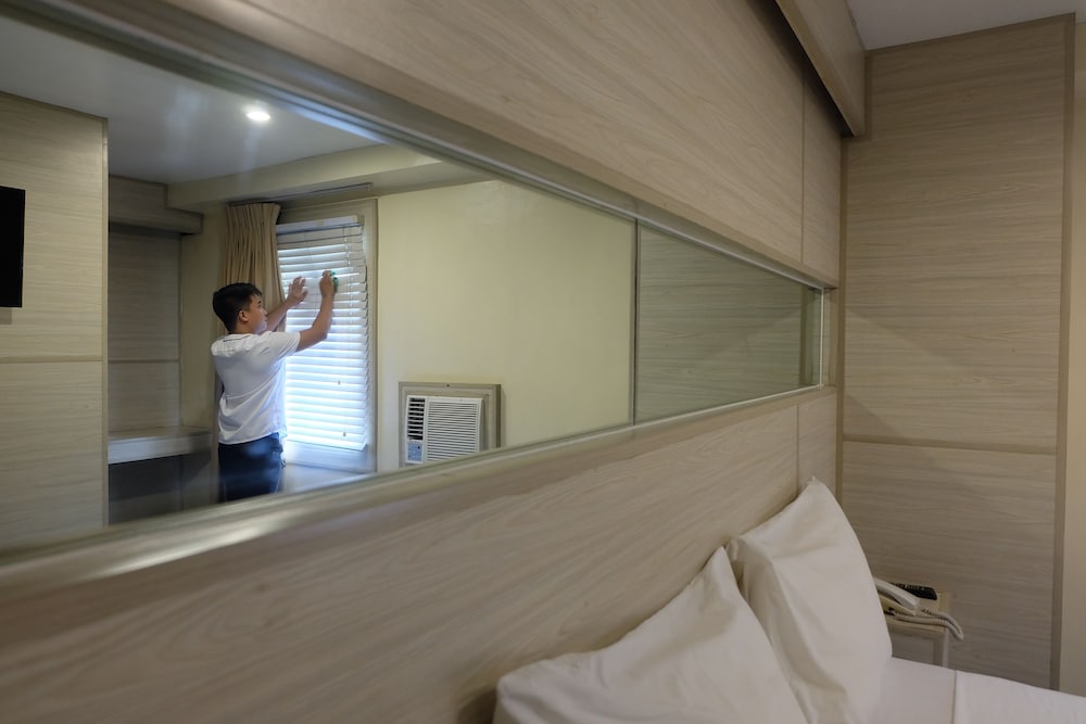 Most of the staff are very courteous and are accommodating even with limited resources. But I can never forget my first night in a very dingy room with a shower that only had 3 streams and pressure was not even that strong, clogged sink and little cockroaches are everywhere. I was just so tired to even care that night. They transferred me to a better room the following day but still below average standards (but more tolerable) and still with occasional cockroaches. I had no choice but stay since they do not want to refund my whole payment. I transferred to another hotel when I had 3 nights left because I do not want to bring tiny crawlers with me on my way home.