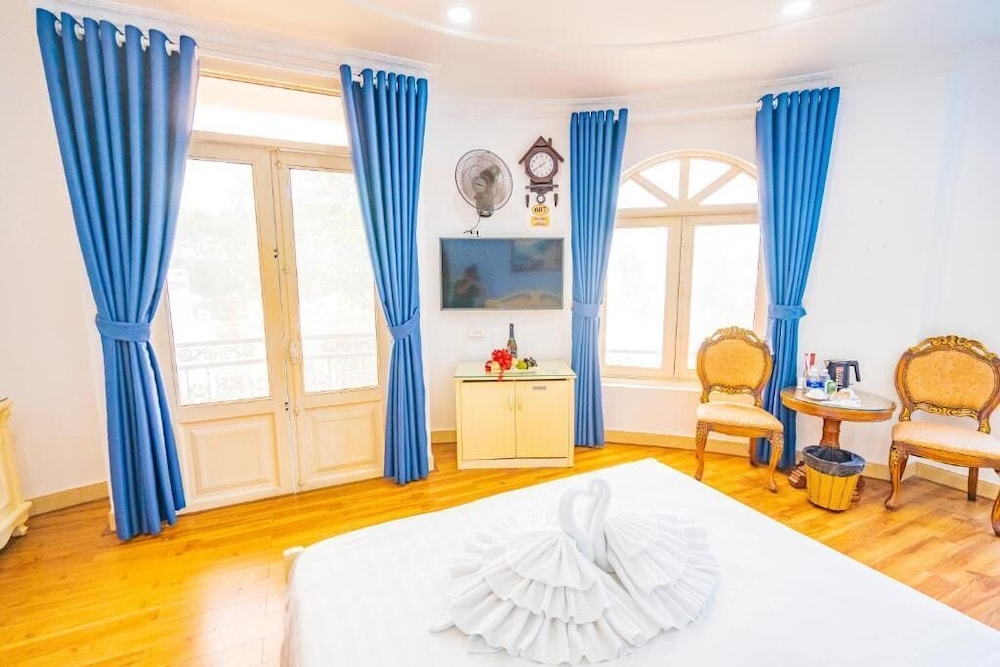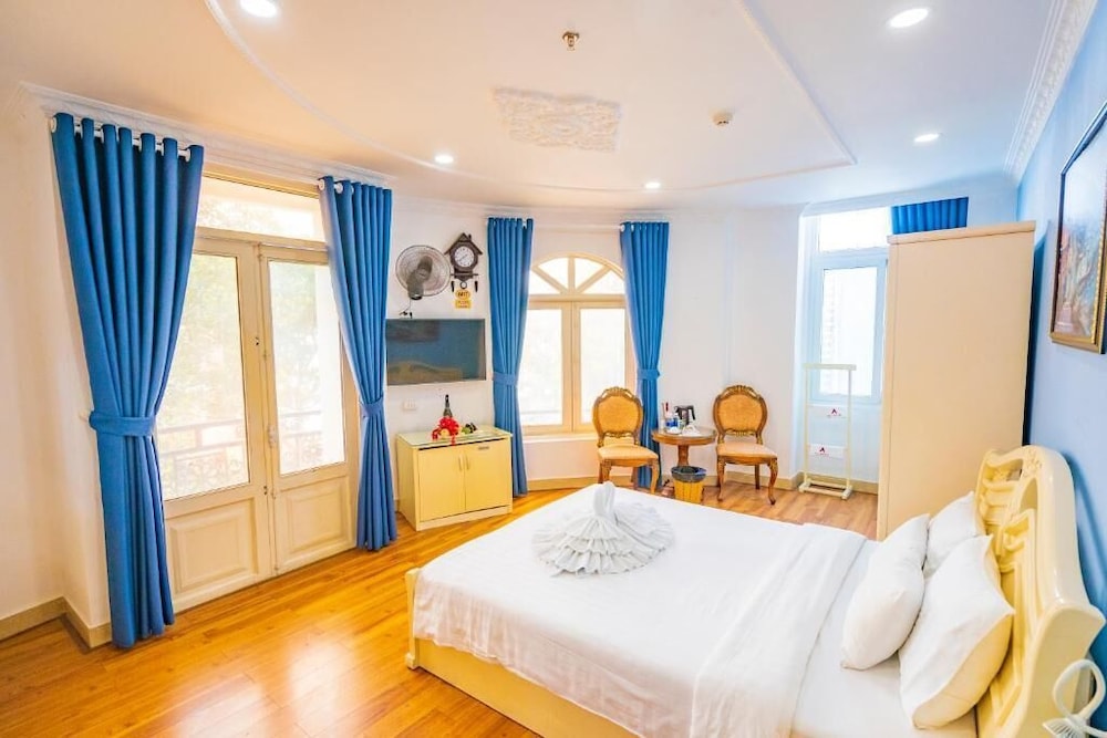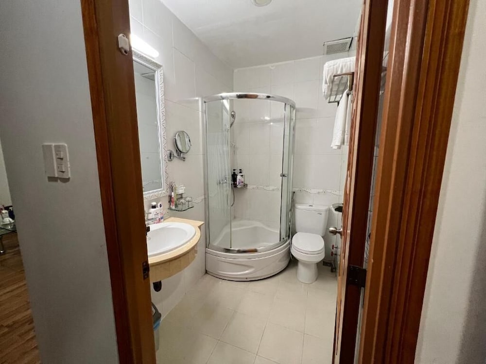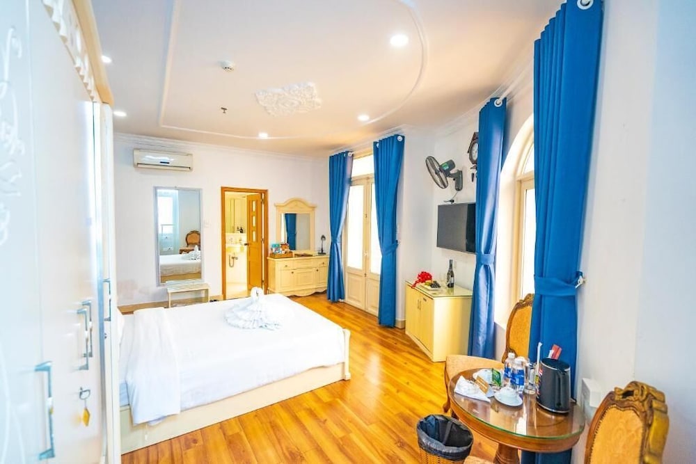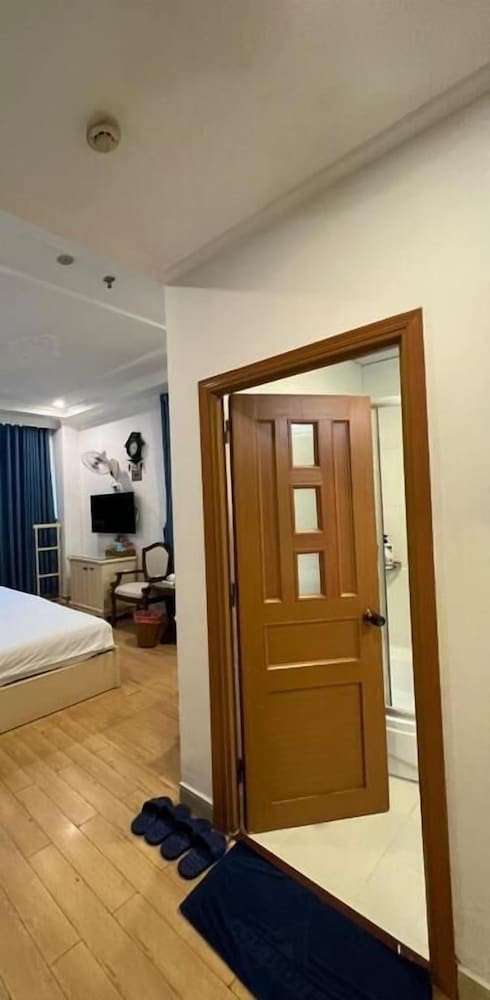 They gave me a large room with an extra king bed (made by connecting two full mattresses). The room was very old-fashioned in style, but spacious, with a double-door balcony. However, it was uncomfortably hot because there was no glass door to keep the air conditioning inside. The toilet and shower were combined, separated only by a single plastic shower curtain. The bathroom window was not secure — it could be opened all the way — and it made the room both noisy and hot. Overall, I would rate this room 2–3 stars, not the 4 stars the hotel claims.