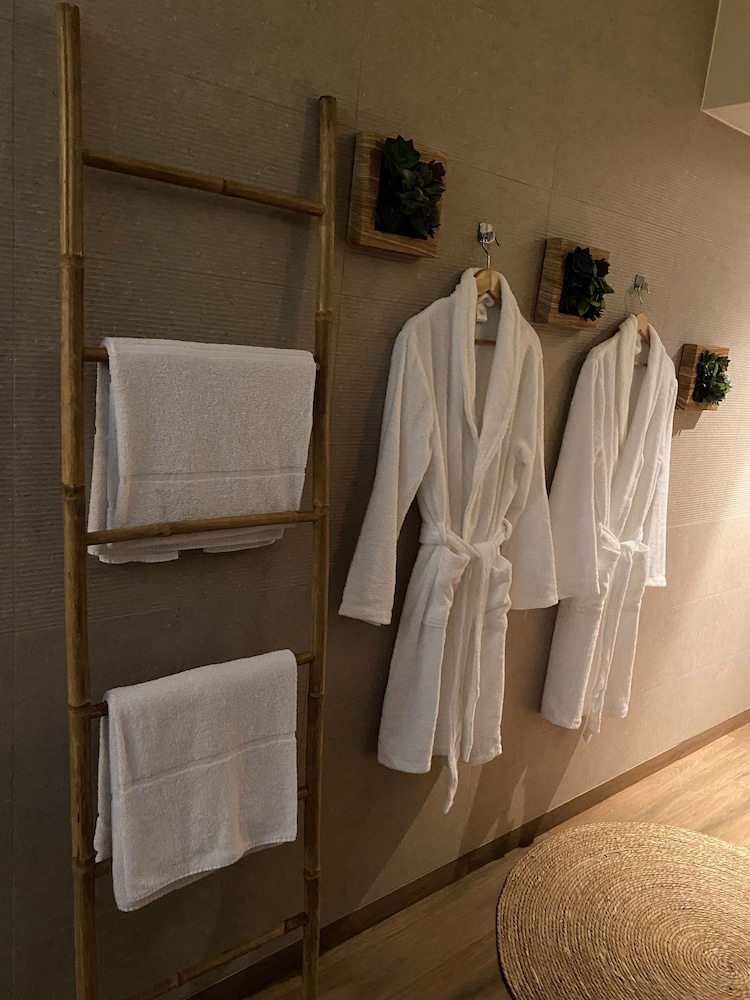 Prévoir un support serviette près du lavabo et une marche pour accéder à la terrasse. Rien de grave pour y passer un bon séjour.
