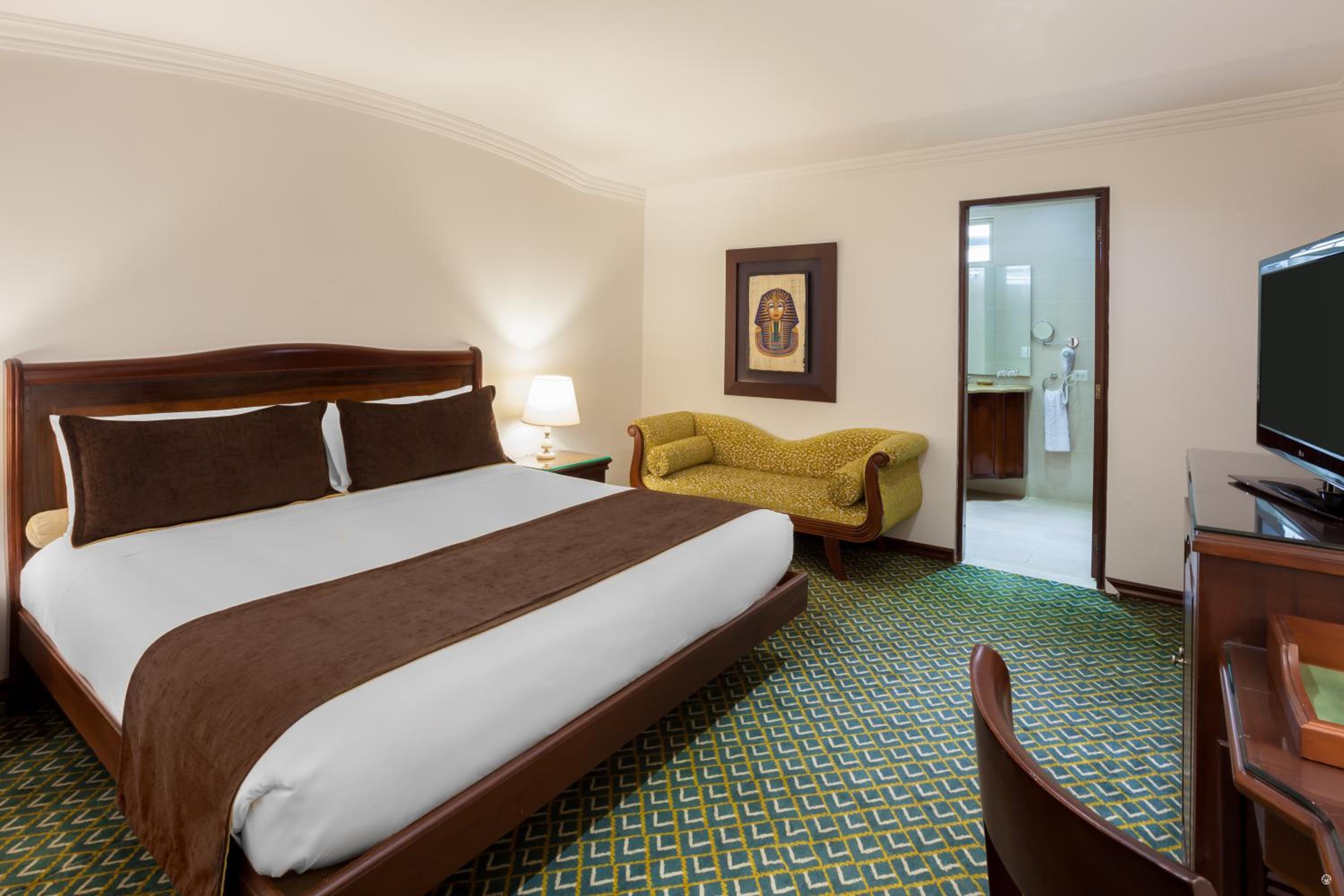 Indulge in the elegant suites at Hotel Embassy Park featuring queen or king-size beds, luxurious suede quilts, and stylish wooden furniture. Enjoy modern amenities like cable TV and complimentary Wi-Fi for a comfortable stay.