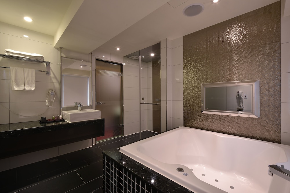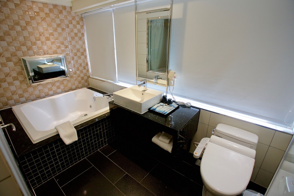 浴室寬敞明亮,有大浴缸大加分,早餐也很好吃,交通便利
