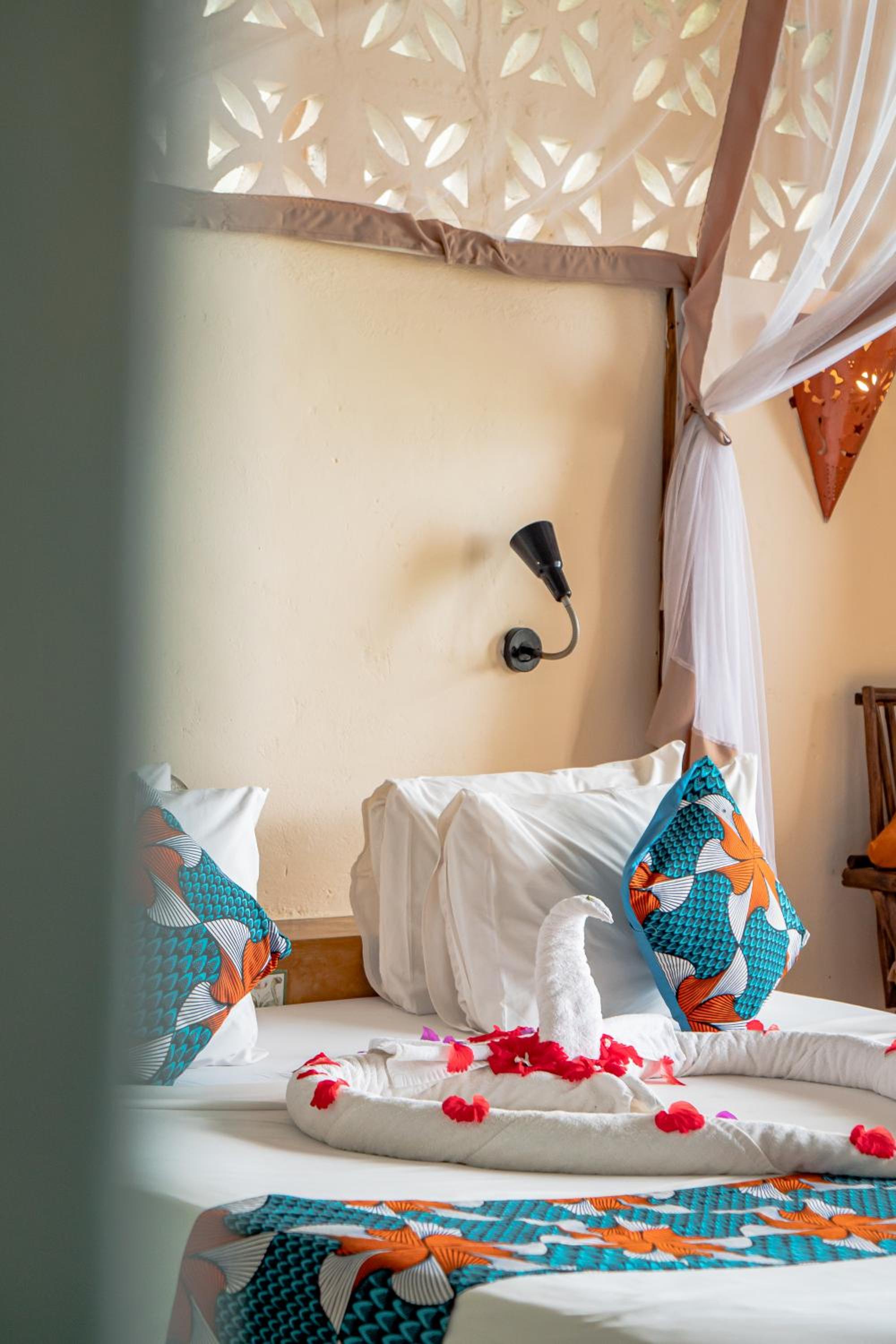 Struttura con location mozzafiato: ubicata di fronte all’isola di Mnemba. Buona colazione, una delle migliori durante il nostro viaggio itinerante a Zanzibar con frutta fresca, croissant, torte fatte in casa, omelette, bacon e salsicce. Consiglio le camere vista mare, in questo caso fanno davvero la differenza!