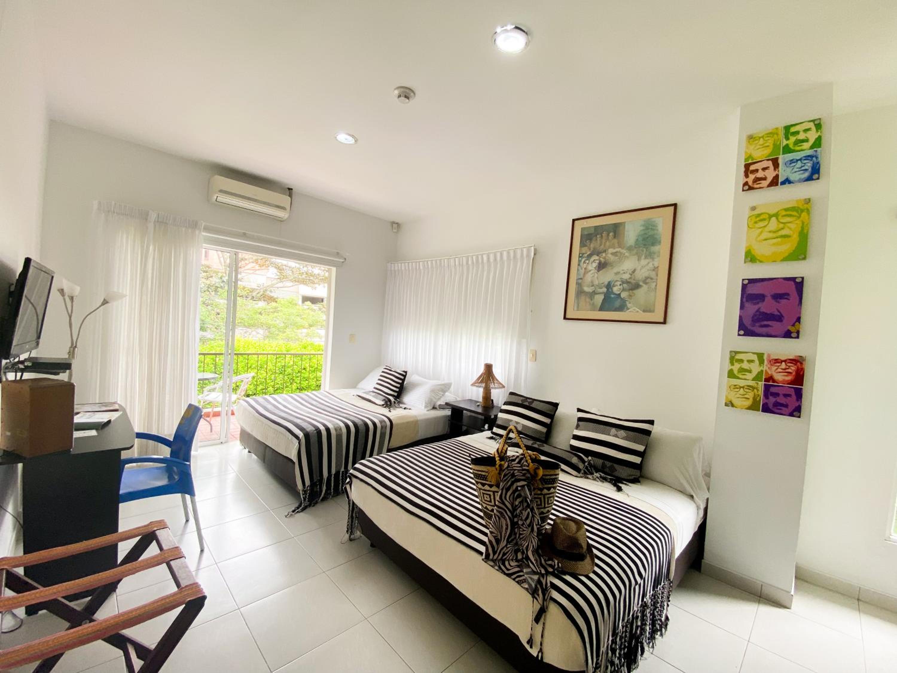 The rooms at Casa Santa Monica Pance are bright, spacious, and thoughtfully decorated to ensure a comfortable stay. With amenities such as air conditioning, flat-screen cable TV, and balconies offering garden views, guests can relax and unwind in style.