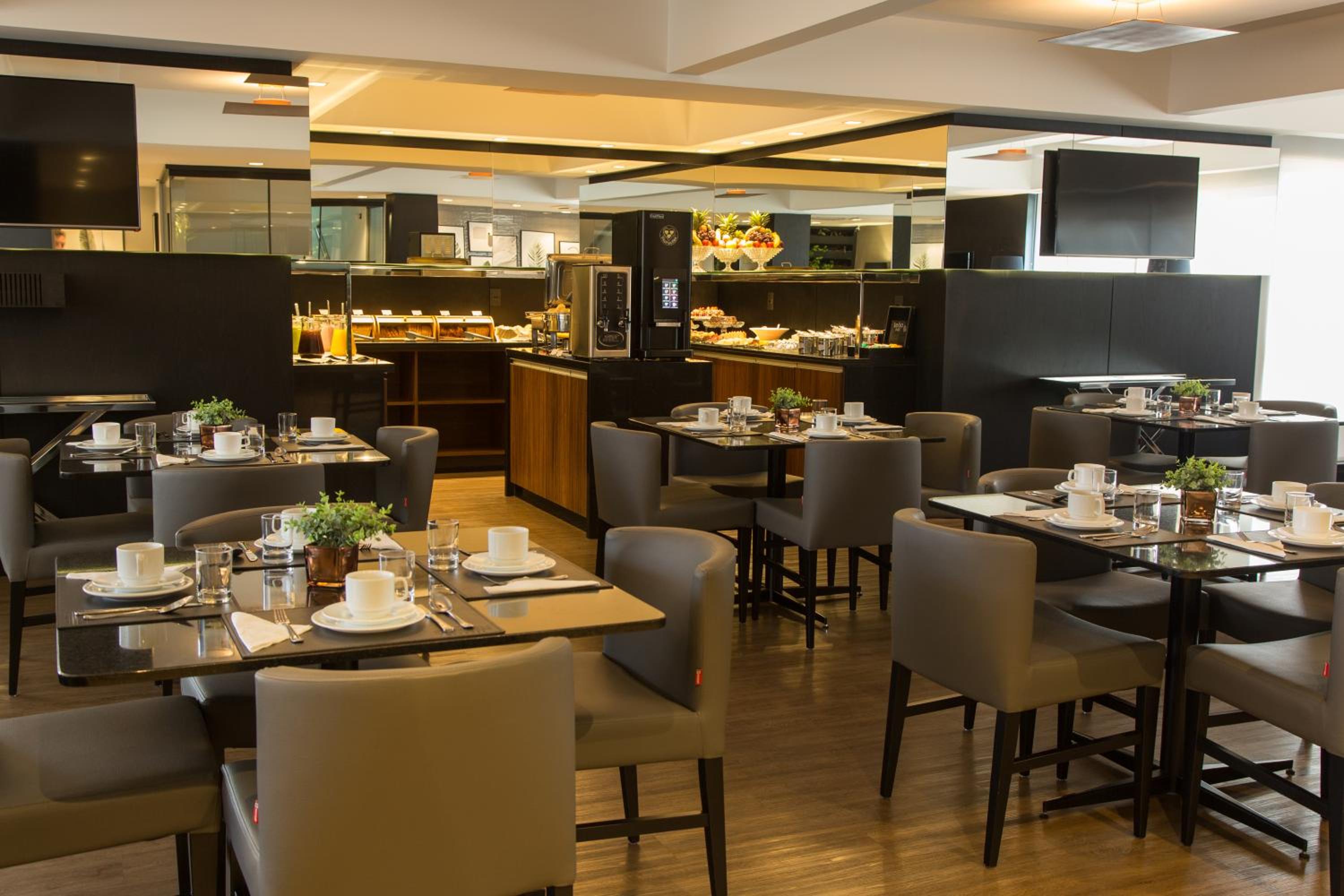 Ambiente do café da manhã. Preço dos quartos, estacionamento fácil.