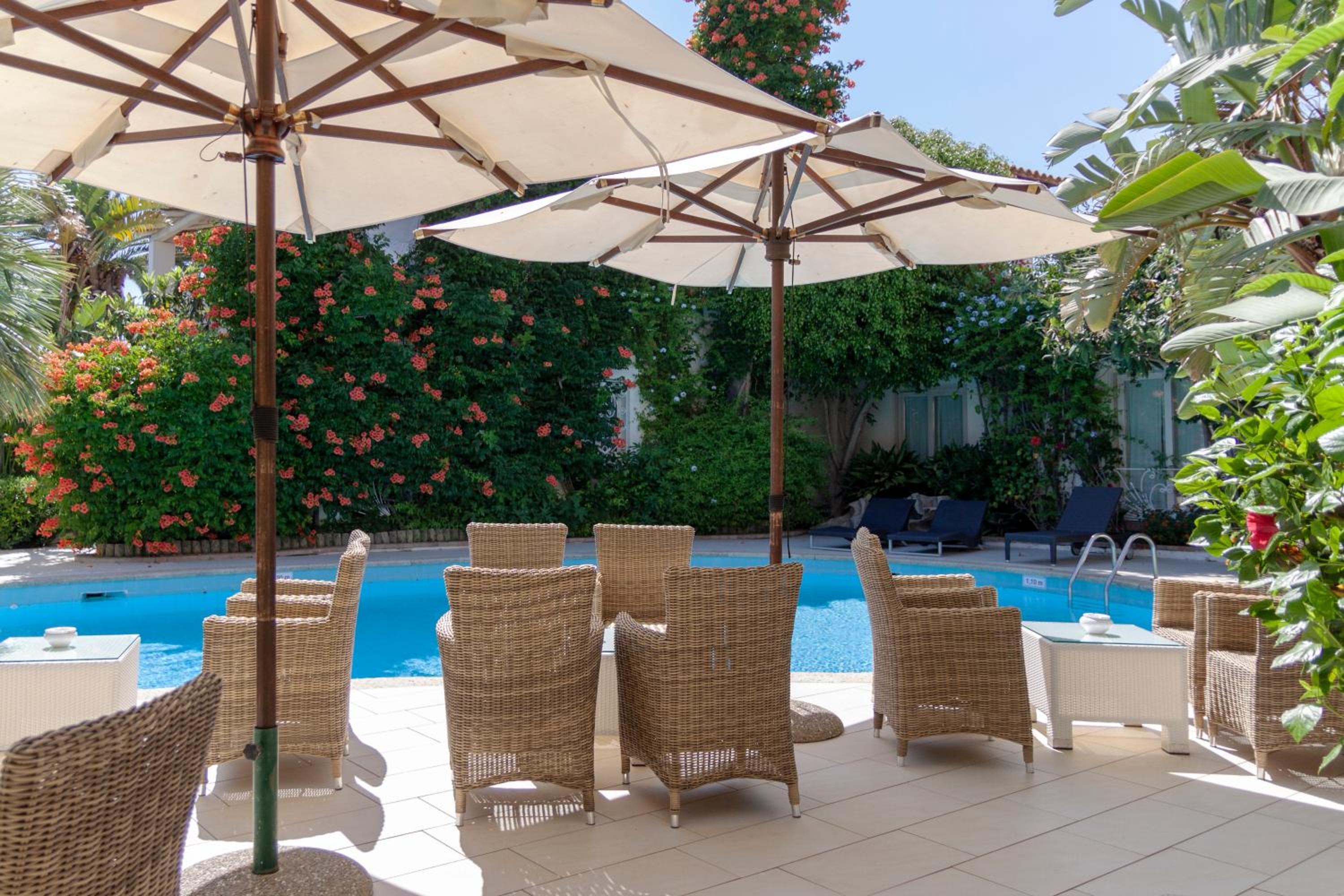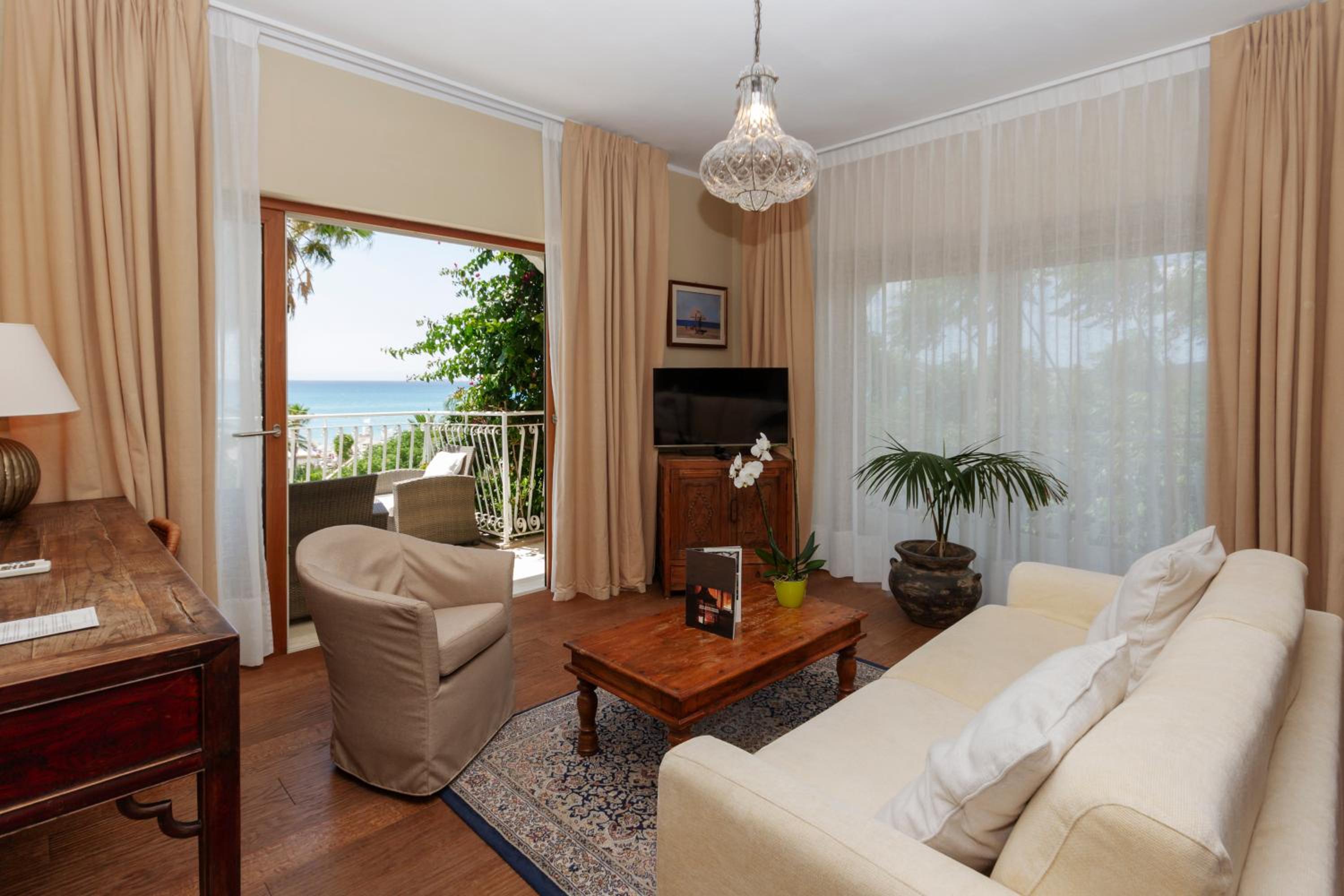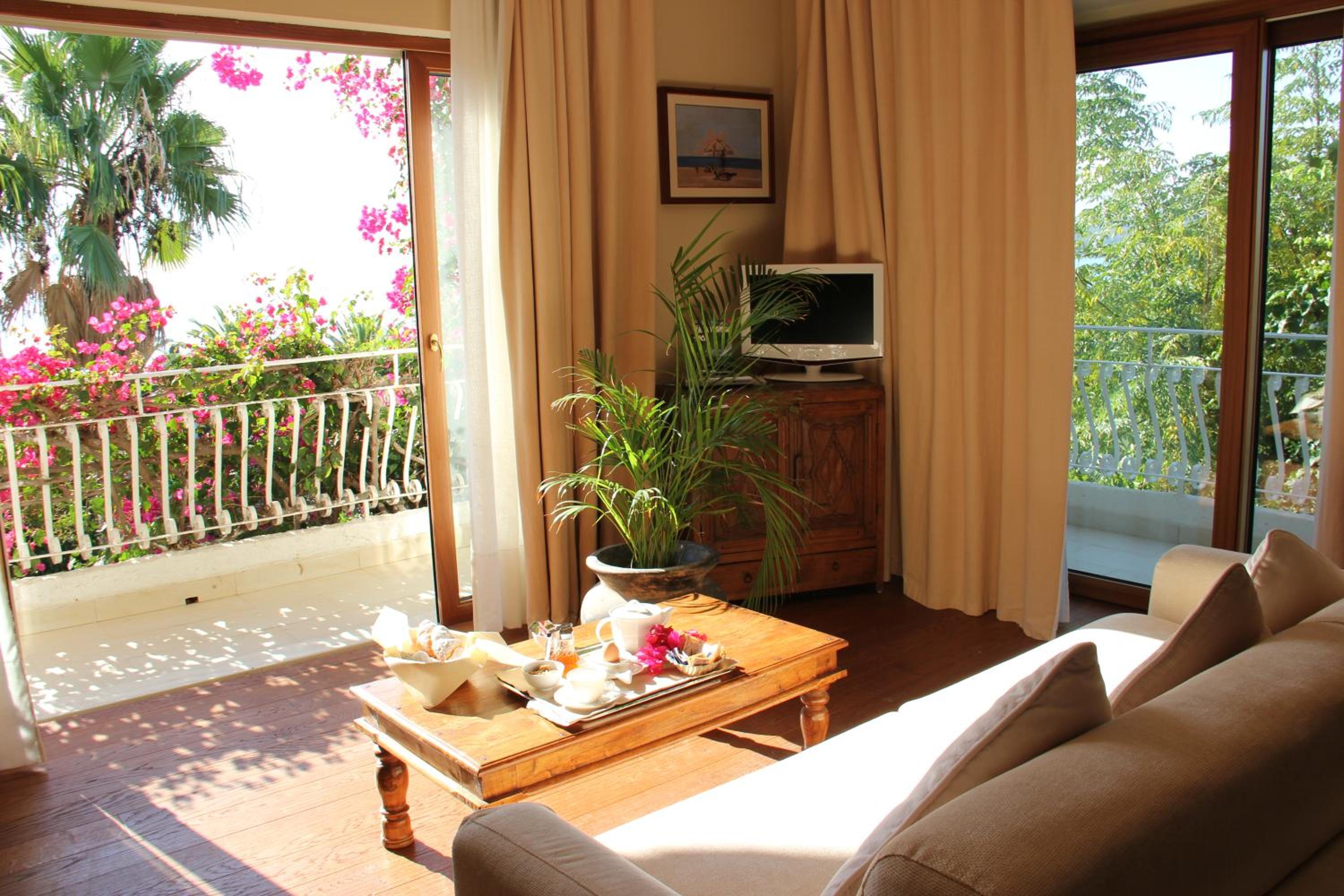 Jättefint rum med härlig utsikt från balkongen mysig lite trädgård med pool. Vänlig och serviceminded personal. Frukosten var utmärkt och intogs i trädgården. Enda minus är att det kostade mellan 20-40 euro att använda hotelllets solstolar på stranden, det hade kunnat bakats in i hotellets rumspriser.