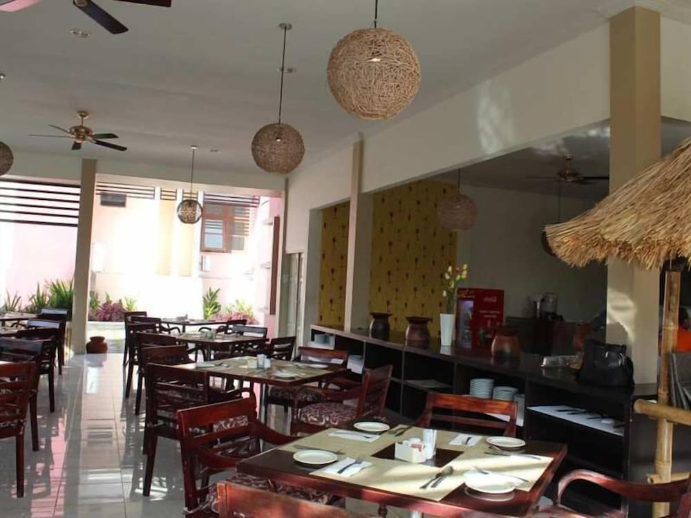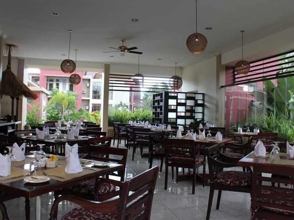 Takes 15 mins in a taxi from the airport (the drivers will tell you it's 30 mins or 1 hr - it's not). The restaurant is decent, they serve cold bintang and good Indonesian food. They also sell pizza, which we didn't try. We also didn't get to try breakfast as we had to leave so early.