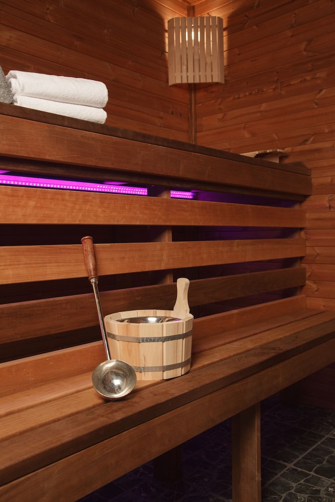 Indulge in relaxation with the hotel's sauna and 24-hour fitness center. Enjoy complimentary wireless internet and concierge services, ensuring a comfortable stay.