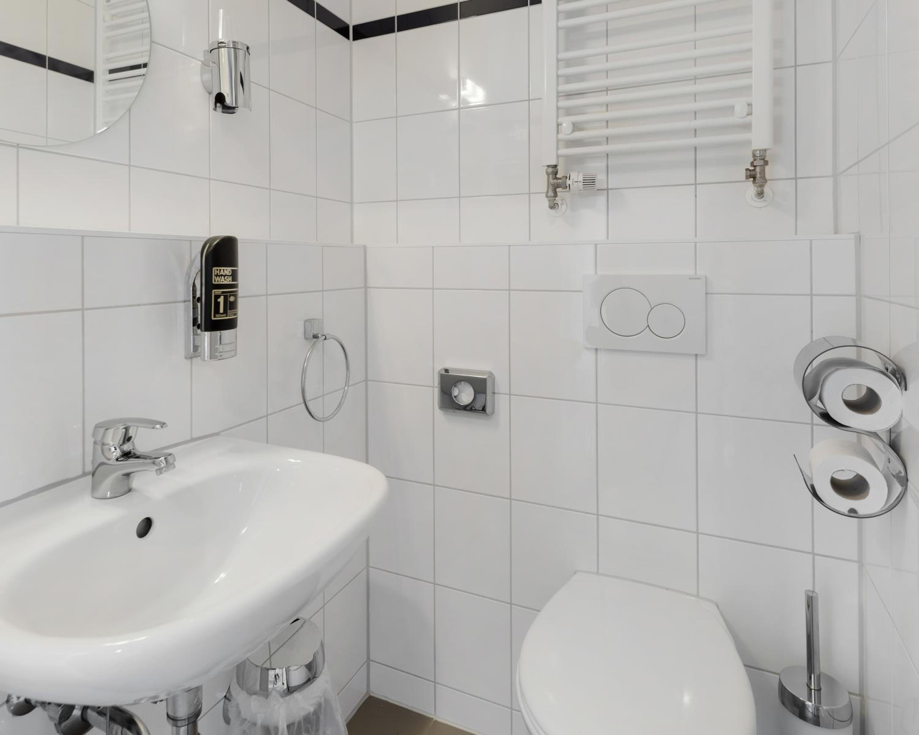 The contemporary-style interiors of the rooms at a&o Frankfurt Galluswarte provide a cozy and inviting atmosphere for guests. Each room is equipped with a private bathroom featuring a shower and a hair dryer, ensuring a comfortable stay for all visitors.