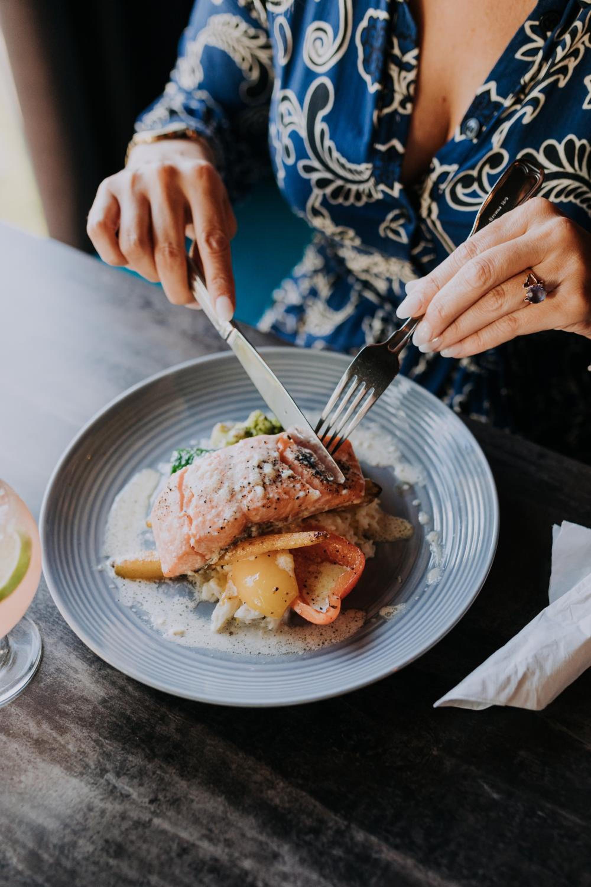 Indulge in exquisite gourmet cuisine at La Table G restaurant, and unwind with a drink while enjoying stunning river views at Bar G.