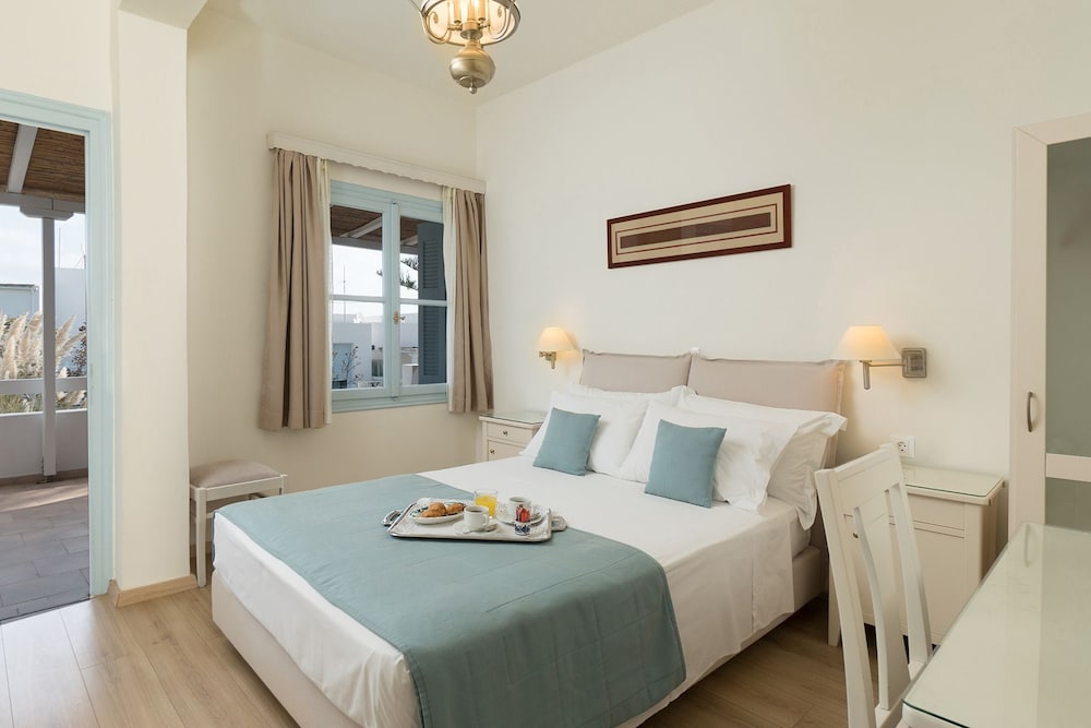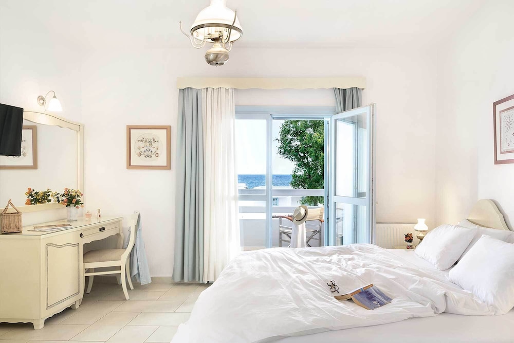 This is a beautiful, well run and presented hotel. Magda is fantastic. Great position. Parking is a bit hairy but not impossible. Great taverna nearby. Close to the chora. We had poor weather and ferry cancelled due to wind but stay was still very pleasant.