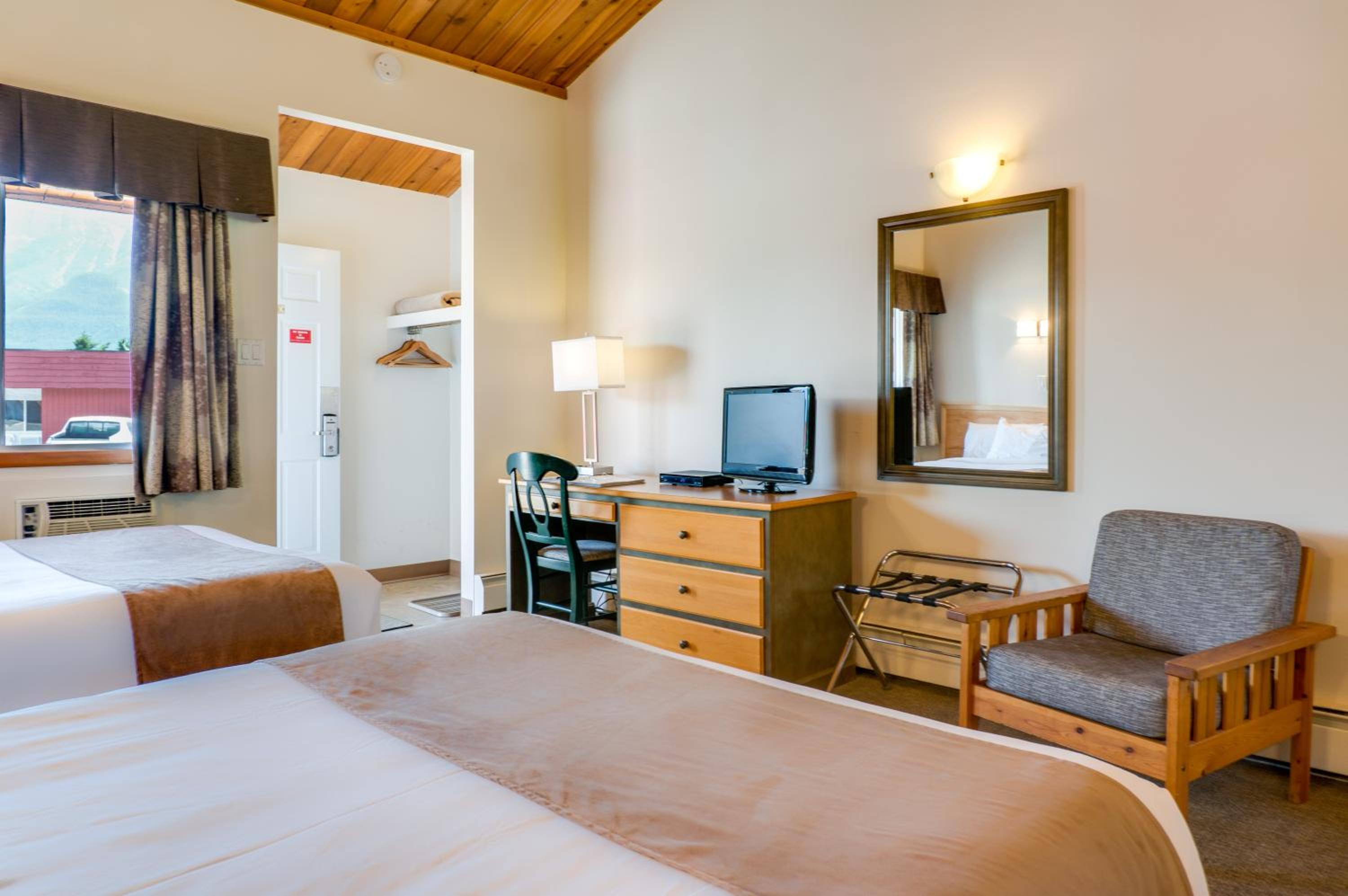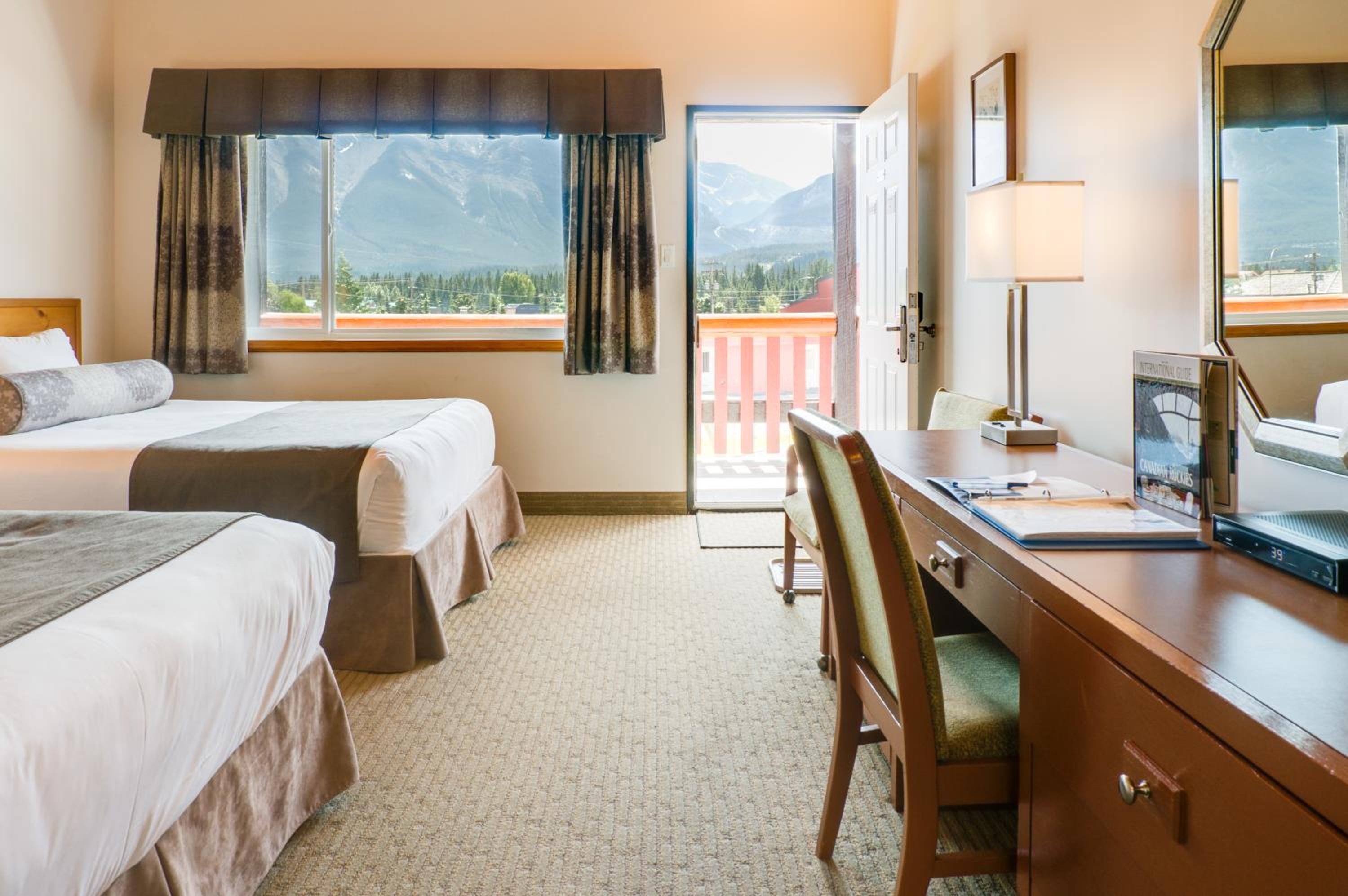 Indulge in a relaxing stay at our Canmore hotel, boasting a hot tub, sauna, and stunning mountain views. Unwind in air-conditioned rooms featuring flat-screen TVs, free WiFi, and private entrances for ultimate comfort.