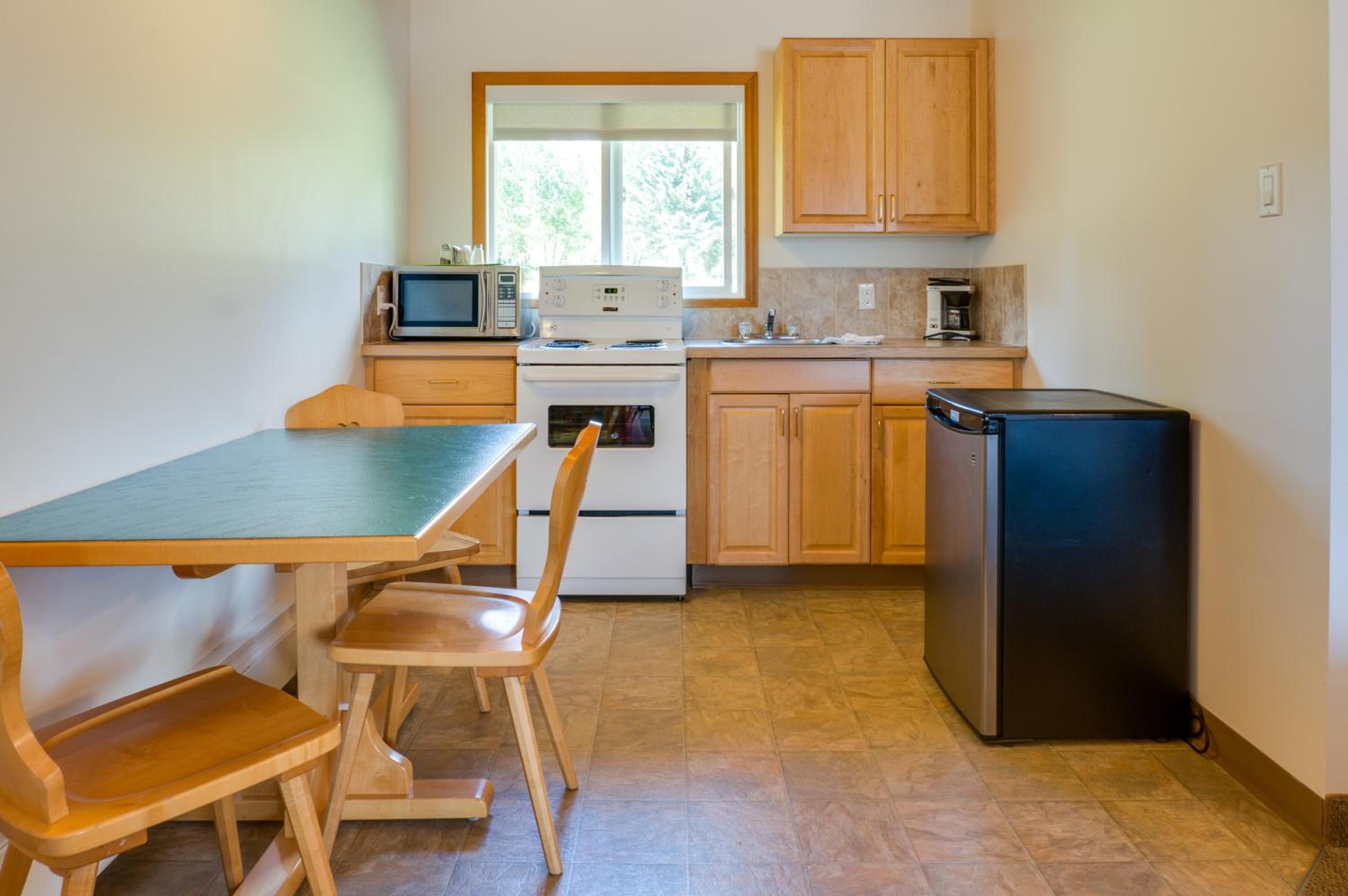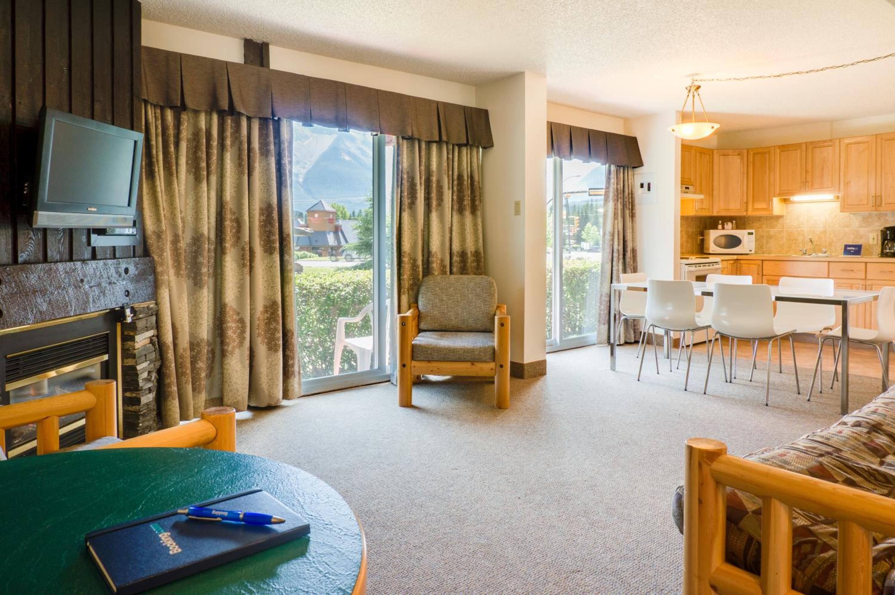 My friend, her two boys and myself stayed in the 2 bed kitchenette, we were able to save on meals, the rooms were quite enough (but the property is older so there IS noise) Lets talk about the view( three sister i all their glory), the hot tub and sauna was great for adults and children at the end of a winter day
