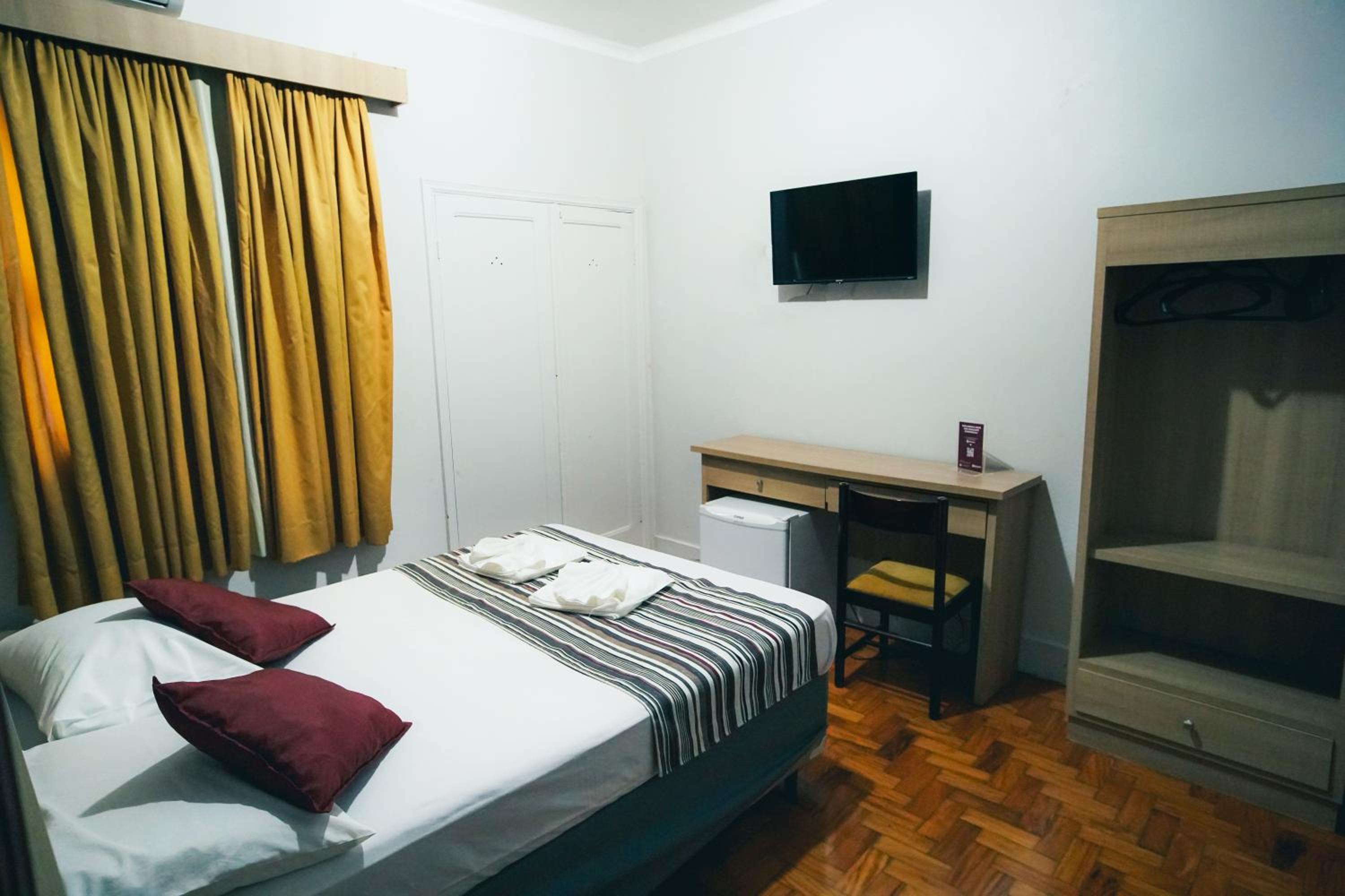 O quarto é espaçoso, acho que deveriam investir na troca das cortinas, que são muito antigas.