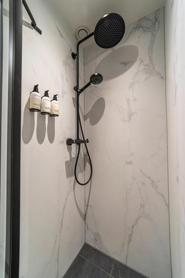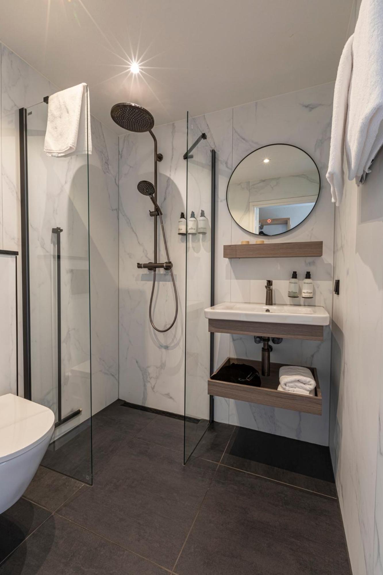 De douche was aan de krappe kant, maar zeker goed genoeg netjes afgewerkt en hygiënisch.
