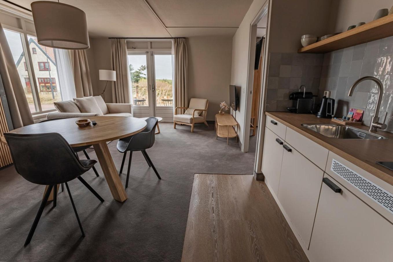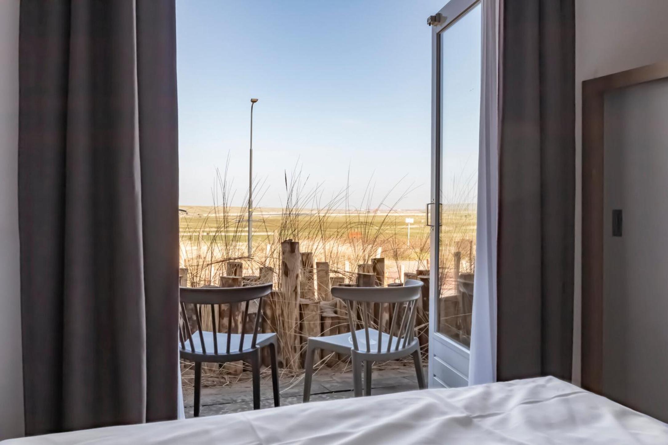 Kamer en uitzicht op de duinen en zeer vriendelijk ontvangst, Hotel is bijna compleet gerenoveerd,Je kunt de auto goed parkeren en ze hebben een fietsenstalling waar je je e-bike kunt stallen en opladen of kunt huren.