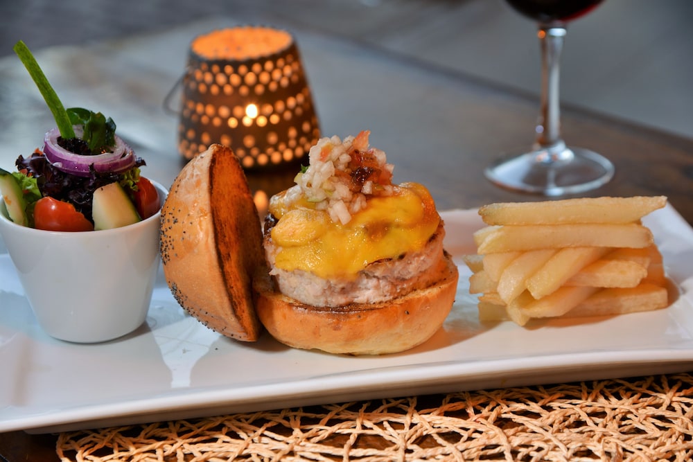Savor exquisite meals at our on-site restaurant or enjoy room service during select hours. Don’t forget to refresh with a drink from our poolside bar or one of our two vibrant lounges.