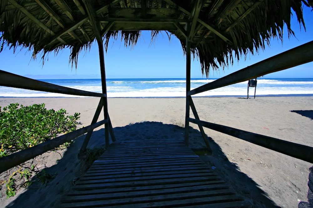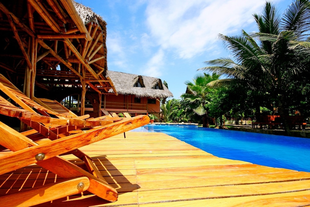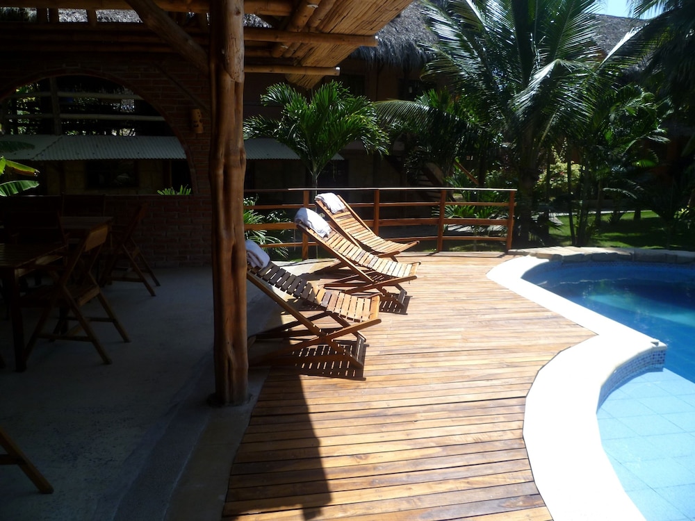 Enjoy the outdoor pool and terrace with beautiful views at La Barquita Beach Hostel.
