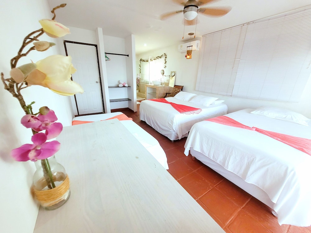 Everyone is very hospitable and friendly--from the pickup at the airport to arrival and throughout our stay. Food is basic but tasty--especially the coconut rice! They will arrange any activity you want, we took a boat ride to playa maman, a secluded beach on the other side of the island. Lovely hammmocks and swings to relax in, and a very nice balcony and rooftop with a great view of Cartagena.