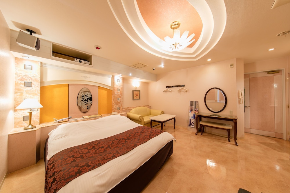 The hotel is intended for couples, which may be a unique type of hotel in Japan. The normal procedure for walk-in customers is to select the room yourself on the vending machine in the lobby, collect the key, and then pay for the room using the payment machine in the room (basically self-service throughout). However, as foreign customers who pre-booked our stay, we still needed to fill out a form at the reception and have our passports copied (this is a requirement by the Japanese government). As it’s an adult-only hotel, it’s very discreet in order to protect customers’ privacy. E.g. you can cover your car registration plate using the board provided in the car park (free private parking outside reception). The staff are not always visible, as probably some customers would rather not be seen, but you can always ring the bell for service. The room itself is very spacious and has a few luxuries you wouldn’t normally find in Japanese hotels of the same price range. E.g., there’s a massage chair, king-size bed, fruit machine, variety of toiletries, TV in the bathroom, vibrator, condoms, etc. Most Japanese hotel rooms are tiny, but this is huge. This is the perfect hotel for couples who arrive by car, very good value. We didn't explore the local area around the hotel, so can't comment on this part.