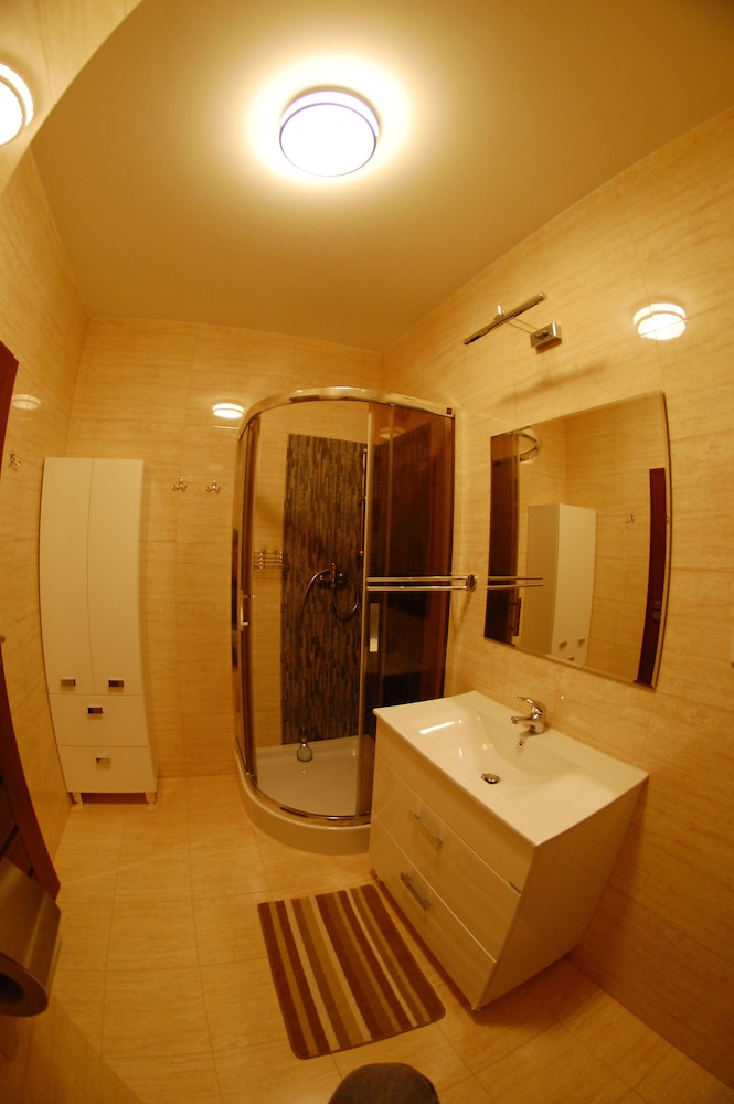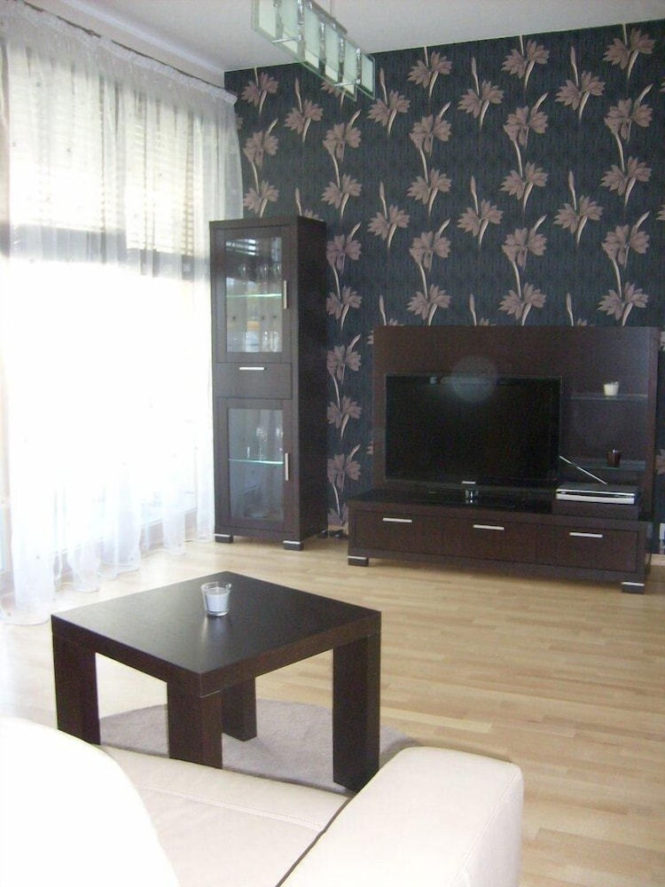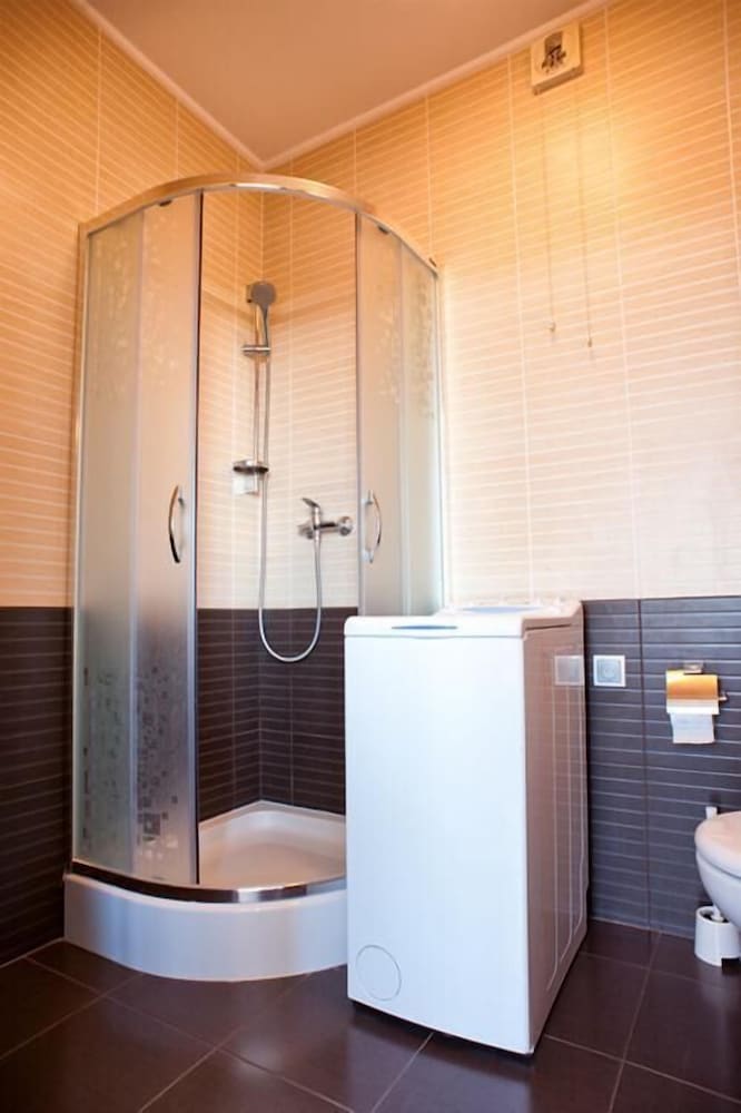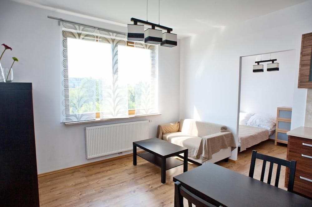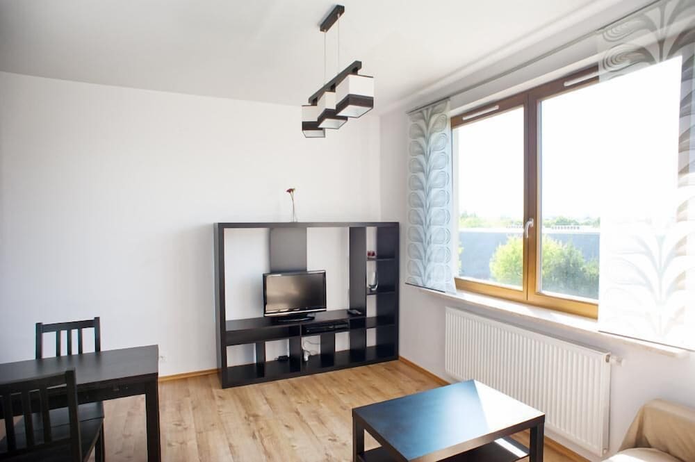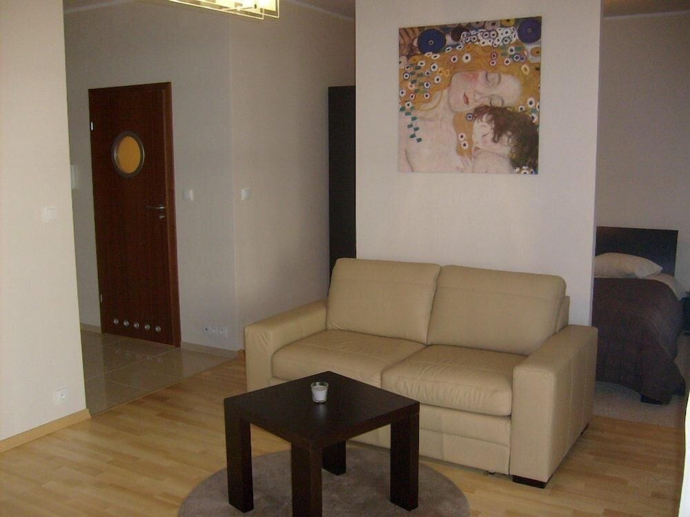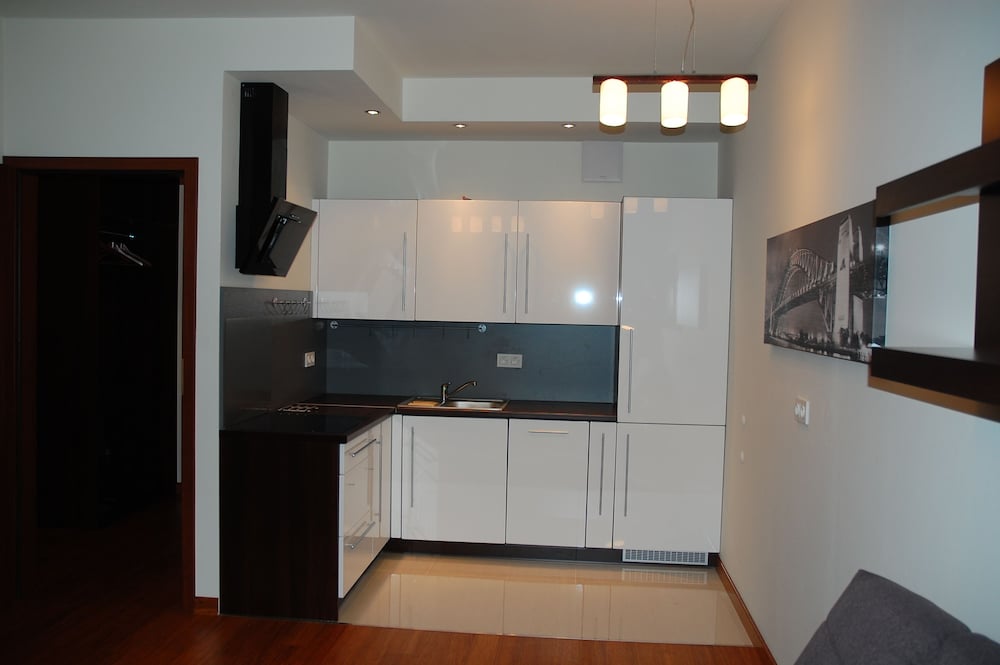 I arrived in Warsaw and was forced to wait until 3PM to check in. The address was not as advertised and had to get assistance from a local café' to call owner. Upon meeting with owner, I was taken to an apartment that did not match any of the photos on Orbitz!!. It was bare inside, not even close to what I expected. Had to request cooking pots and pans. Do not expect to entertain guests for dinner unless you plan to buy or bring cooking utensils. Only a mini refridgerator, seating and table for 2, no seating for balcony, broken kitchen faucet, toilet water ran constantly after use. The private garage parking was nice since street parking is next to impossible.