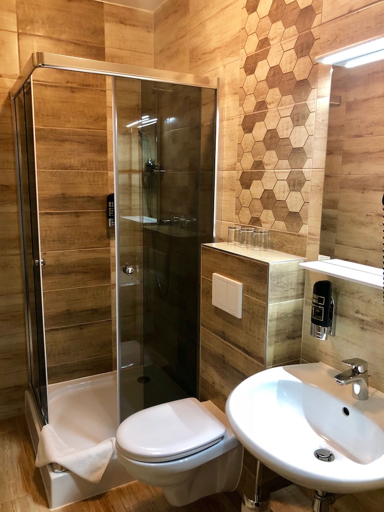 Hotel was in great location. Near train station. Didnt realize no AC and it was very warm. They did supply a fan and its fine if only one person in room. Windows had to stay open but bus stop and bar downstairs made early night too noisy. Checkin only till 5pm so had to be done electronically via a machine. Difficult for a less techy visitor. Still a good stay. Nice rooms.