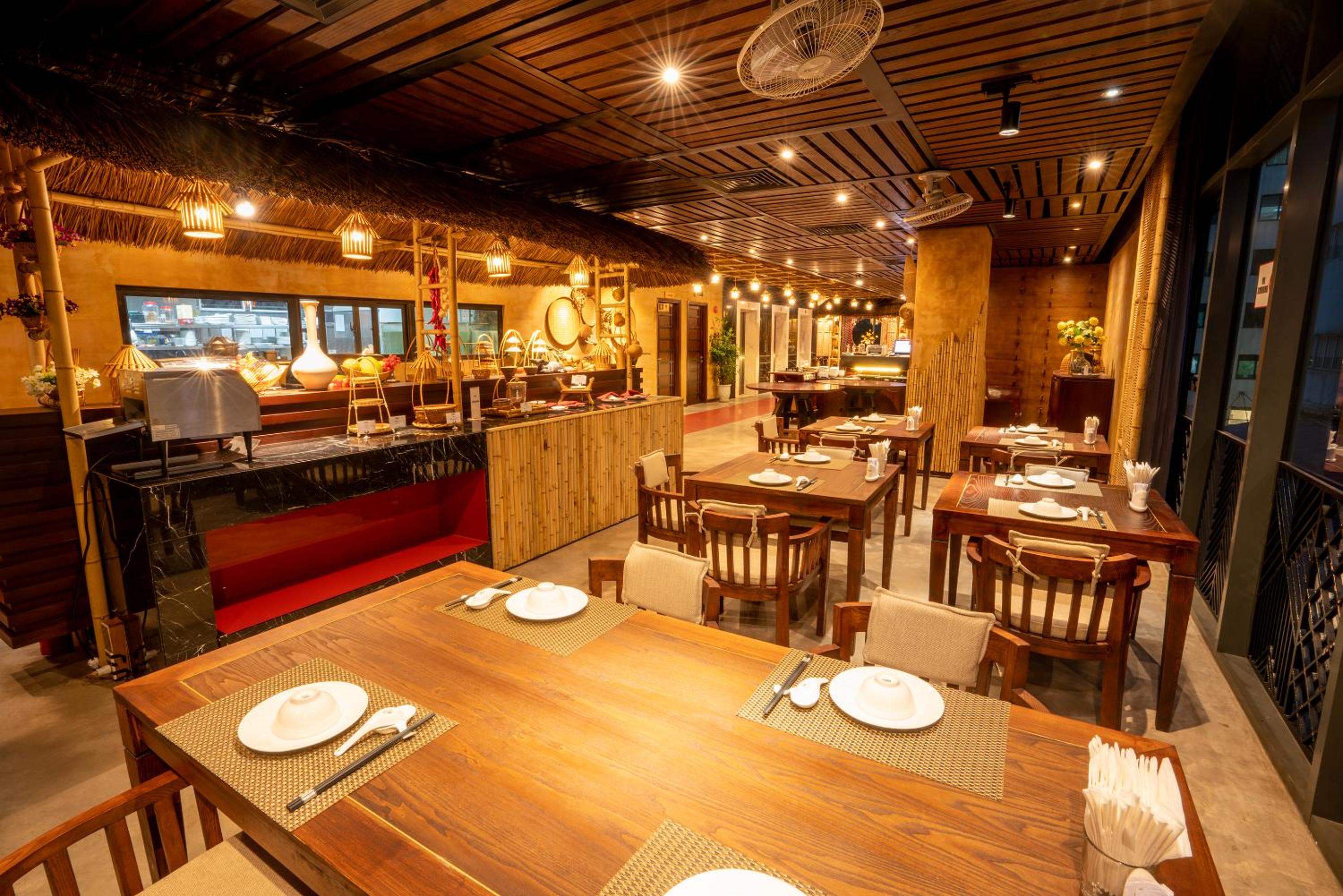 Indulge in a variety of culinary delights at the on-site restaurant, serving Vietnamese and international dishes. For a more laid-back setting, visit the Wine Cellar Restaurant or Coffee Lounge. Additionally, take advantage of the fitness centre, 24-hour front desk, and complimentary parking during your stay.