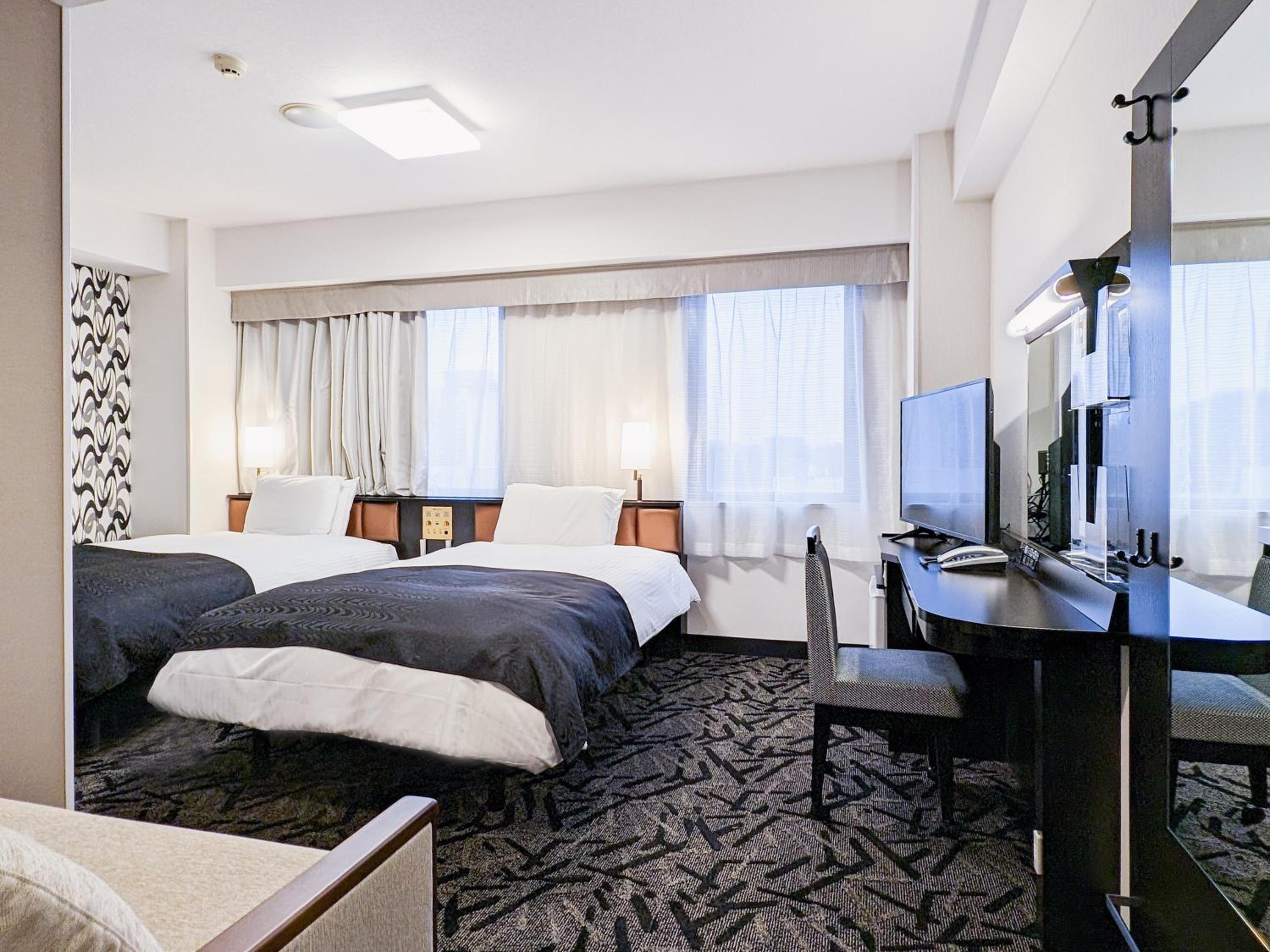 The air-conditioned rooms at APA Hotel Akita-Senshukoen are designed for comfort with amenities such as a fridge, electric kettle, and flat-screen TV for entertainment. Guests can also indulge in the traditional experience of wearing Yukata robes provided in the rooms.