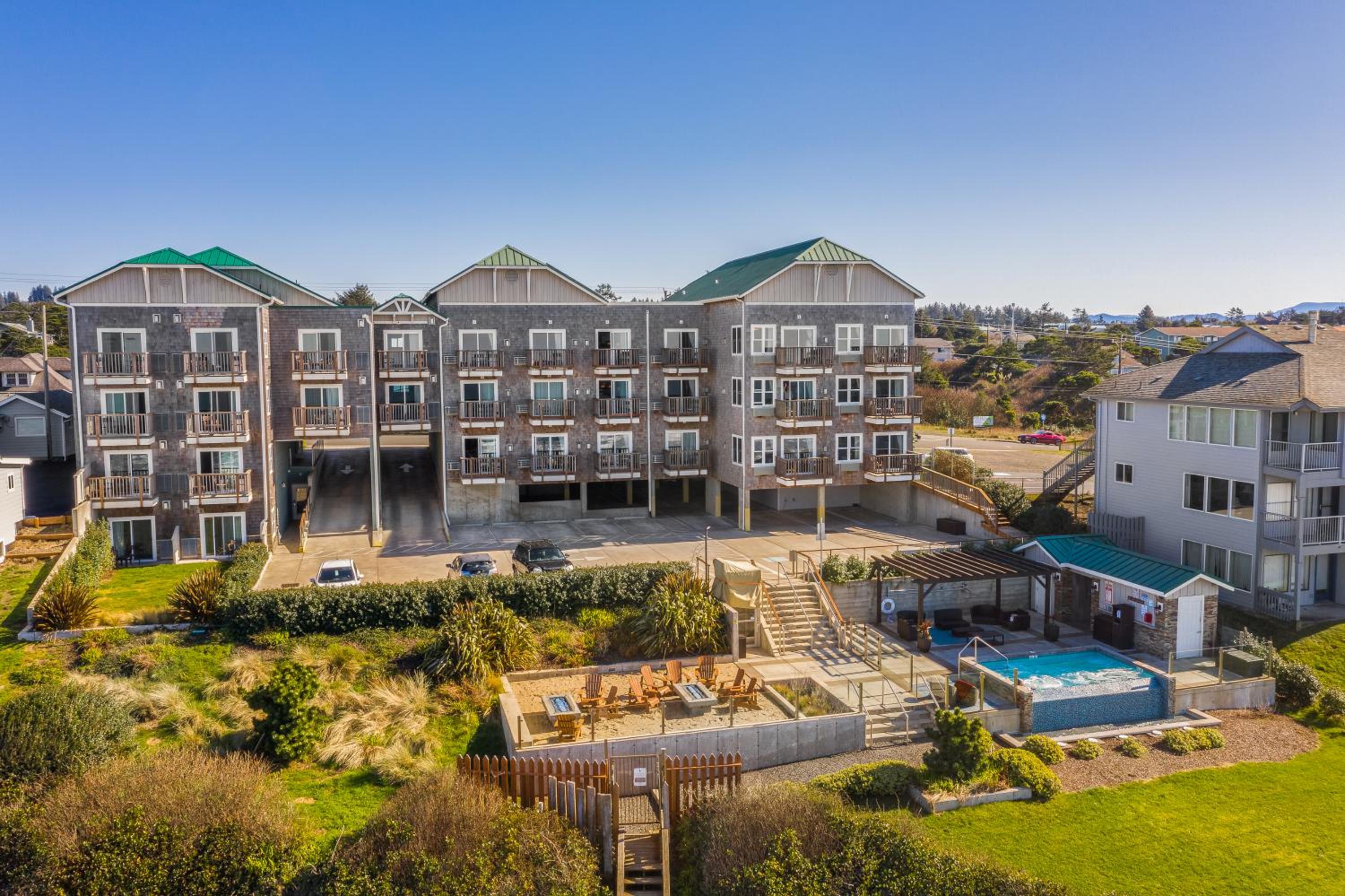 Love the hot tub and fire pits with the ocean view.