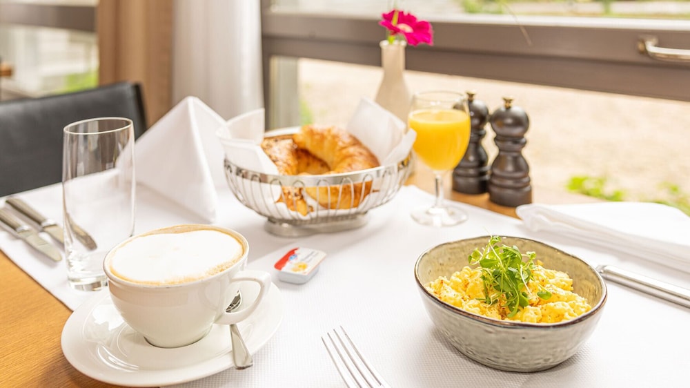 Savor delectable meals at our onsite Restaurant Schuetzen, where every dish is crafted with care. Enjoy a delightful buffet breakfast on weekends and unwind with your favorite drink at our vibrant bar/lounge.