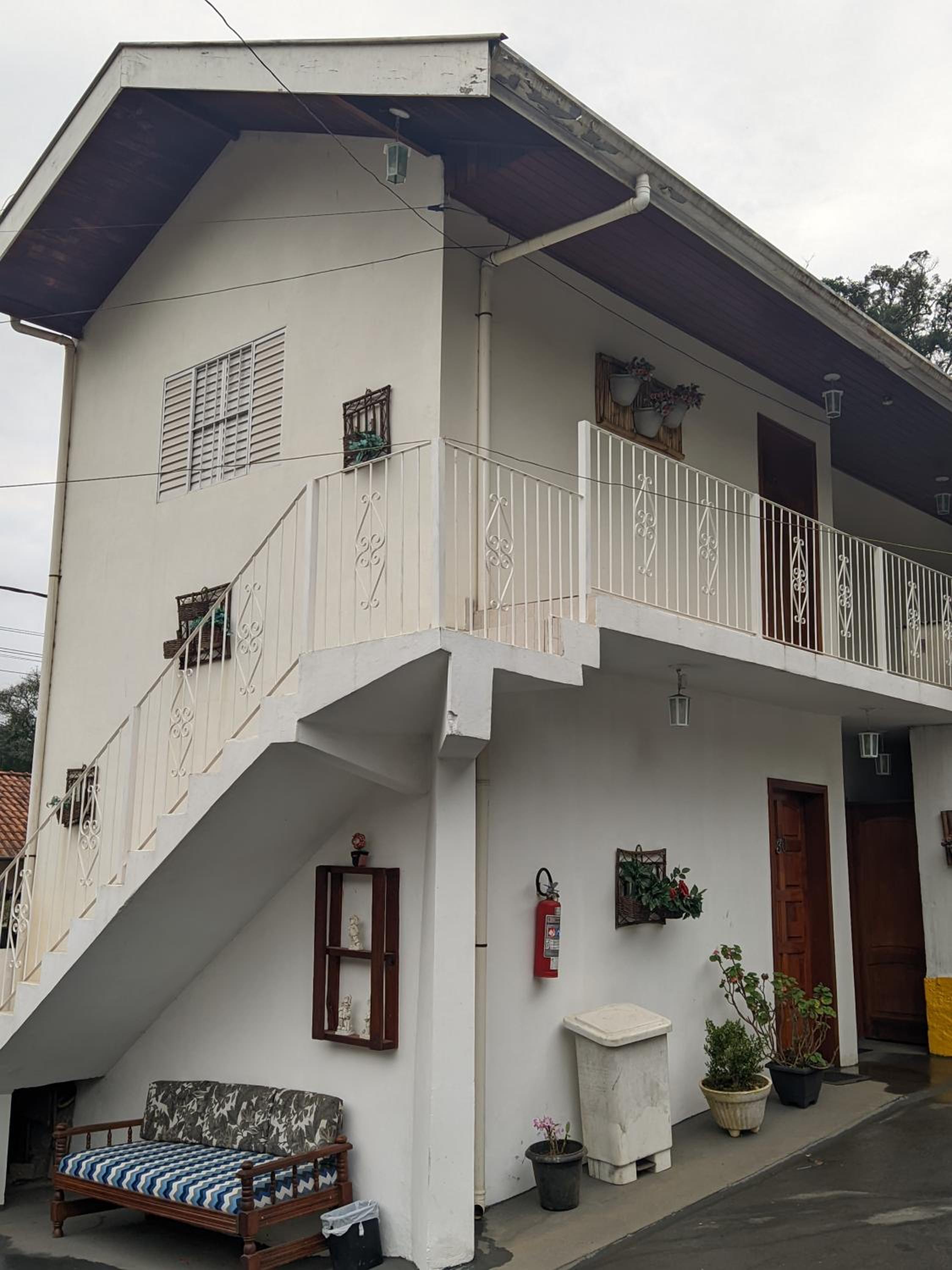 Quando chegamos na hospedagem, fomos levados a uma vila lateral em U de apartamentos, que mais parecia a Vila do Chaves!