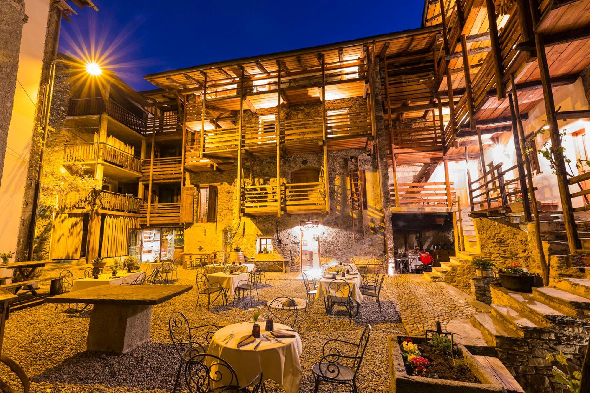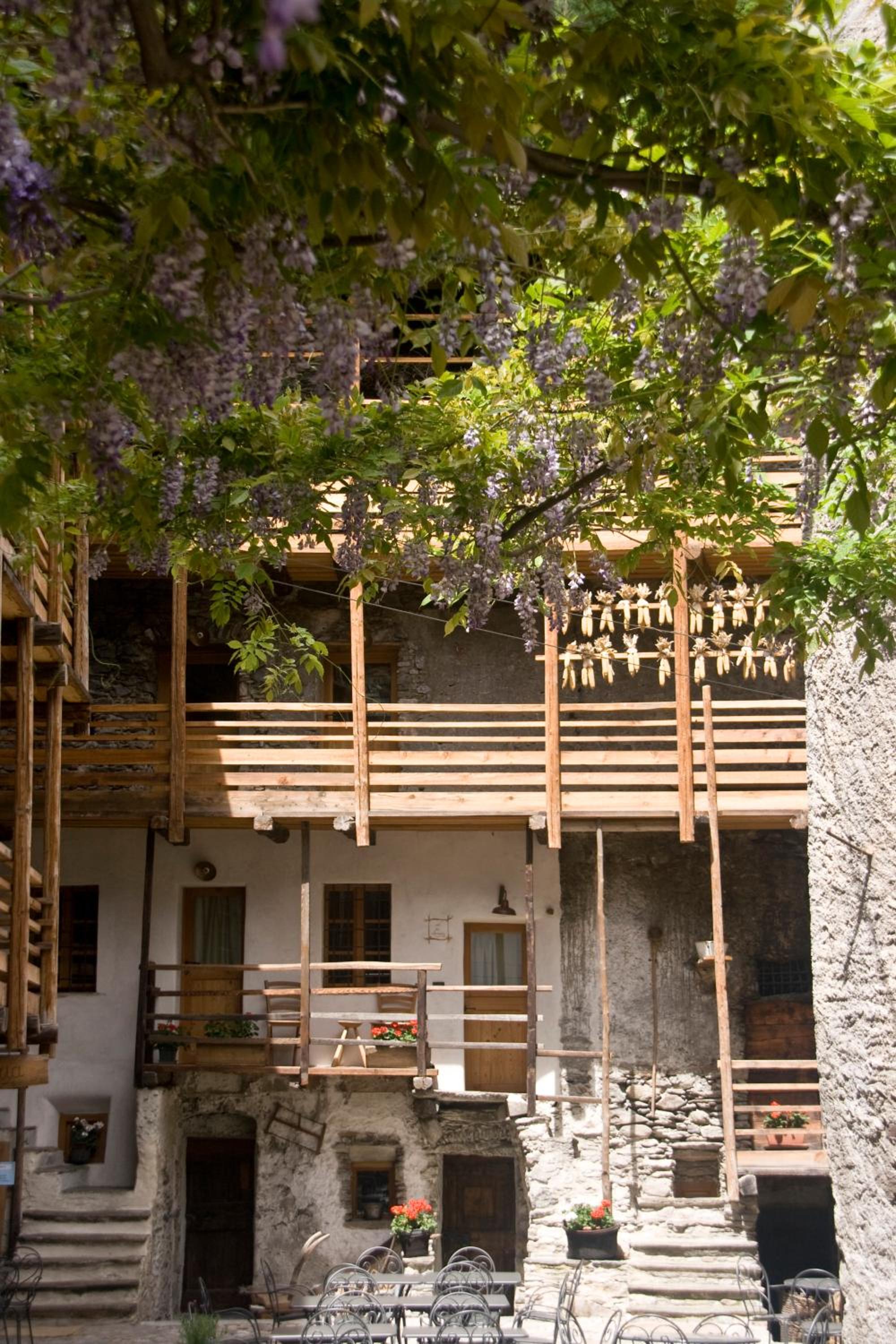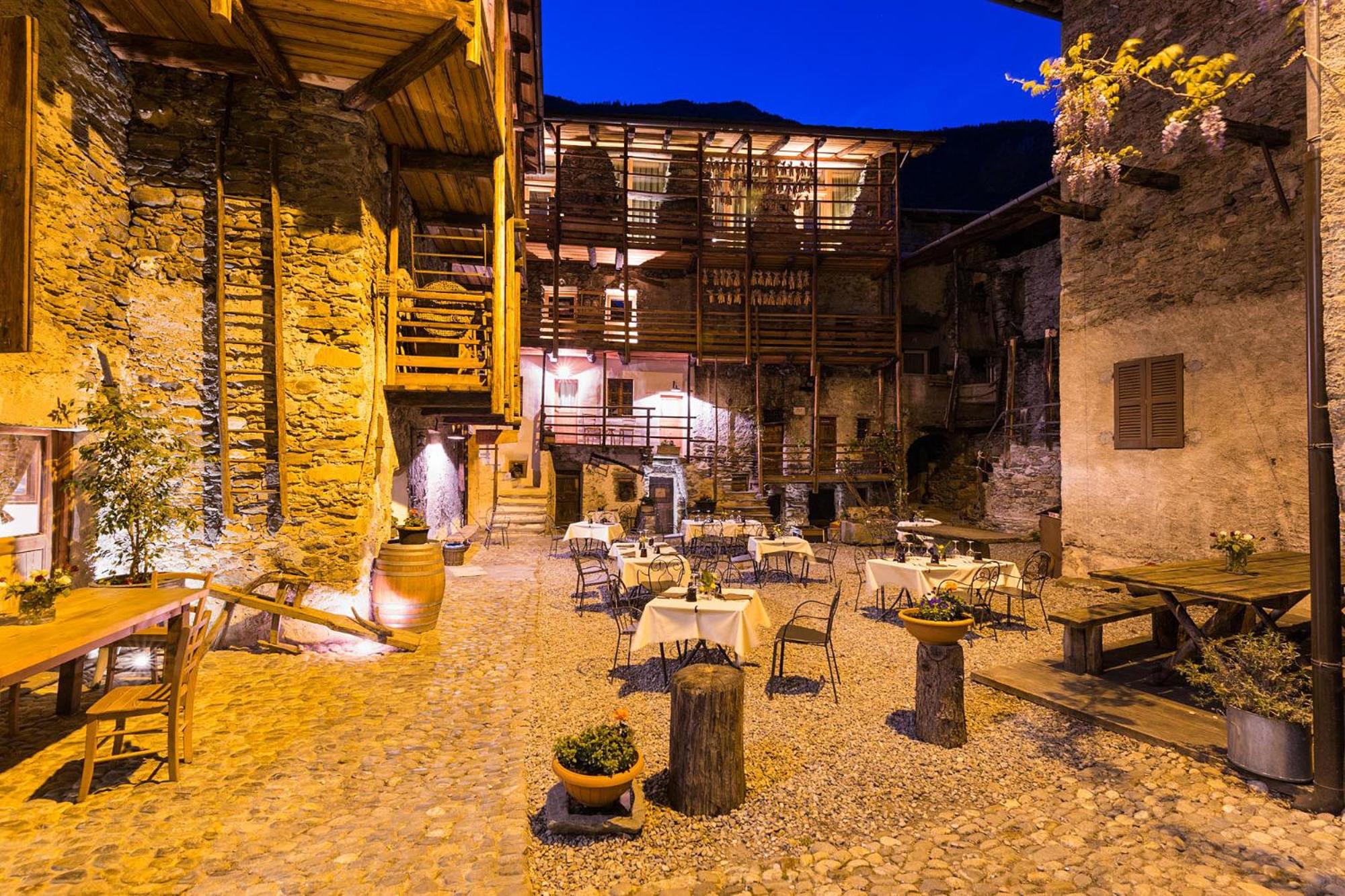 Отель расположен у подножья гор ,в низине ,вокруг виноградники и прекрасные виды на заснеженные вершины Альп .Очень впечатляющее здание ,старинное каменное поместье с внутренним двором ,деревянными лестницами ,уютным стилизованным под средневековье интерьером !Очень чисто,комфортно ,тепло !Гостеприимные хозяева и дружелюбный персонал !Очень хороший ресторан предлагает блюда и вина данного региона (Валтеллина )по нормальным ценам .