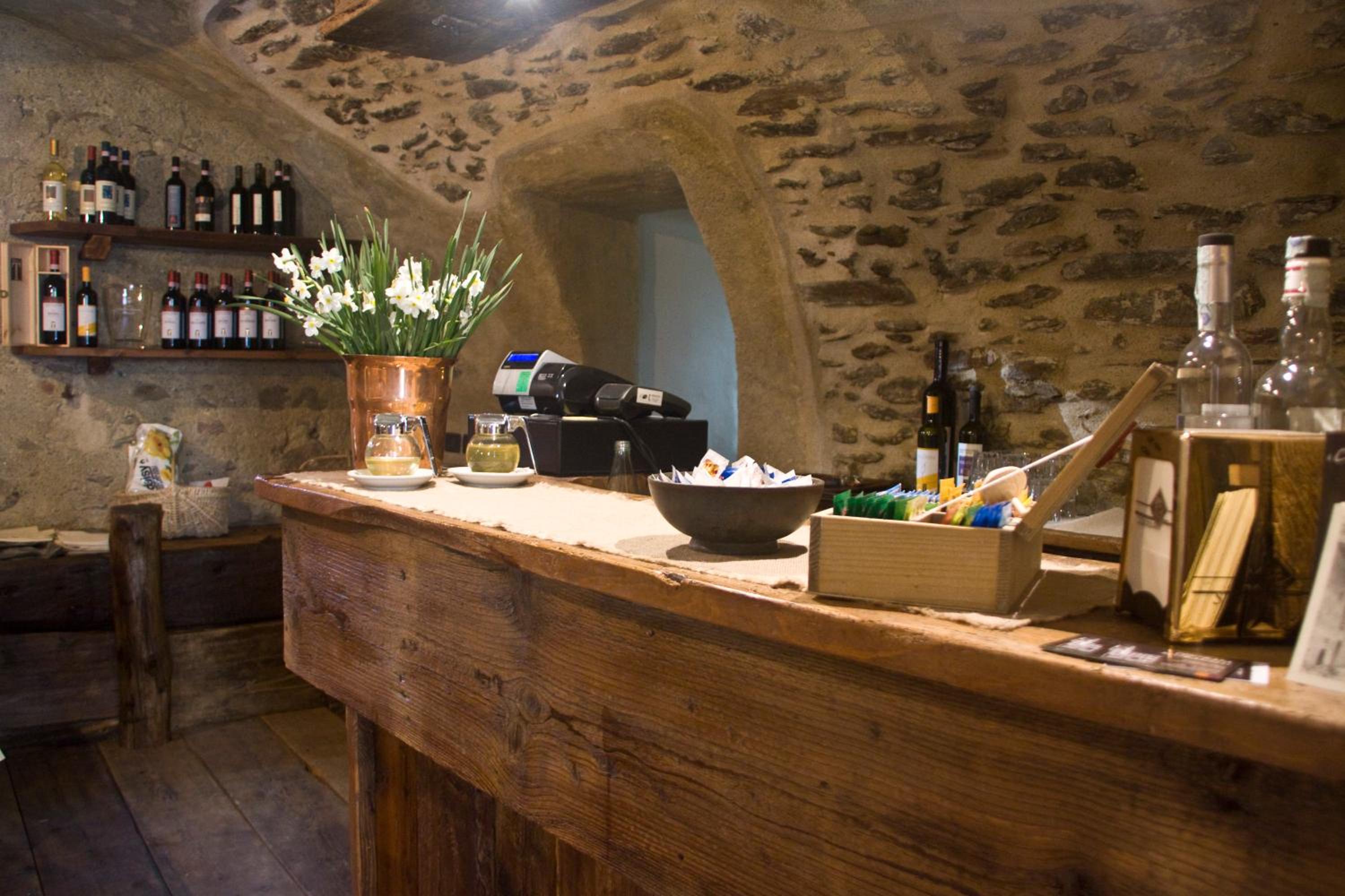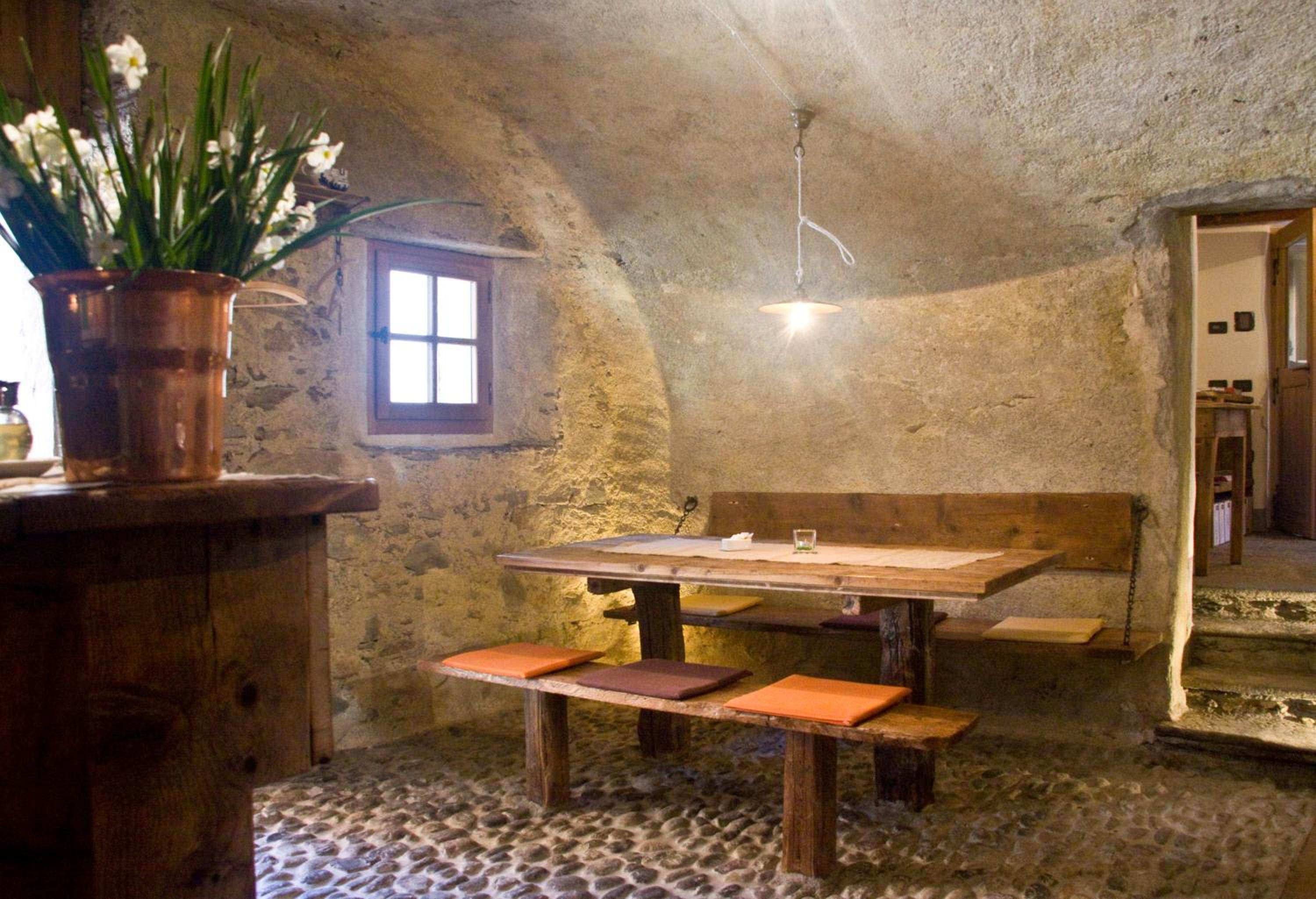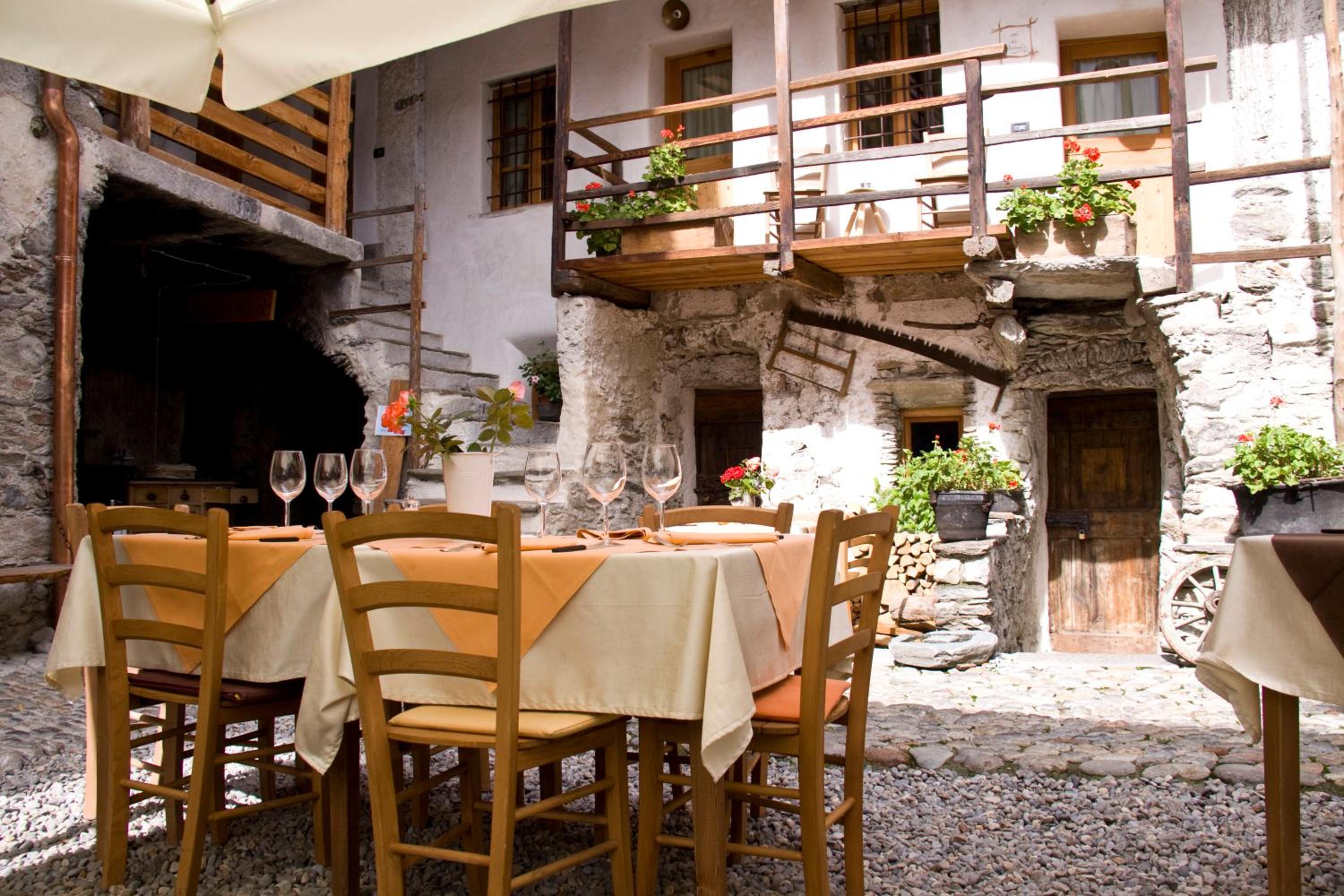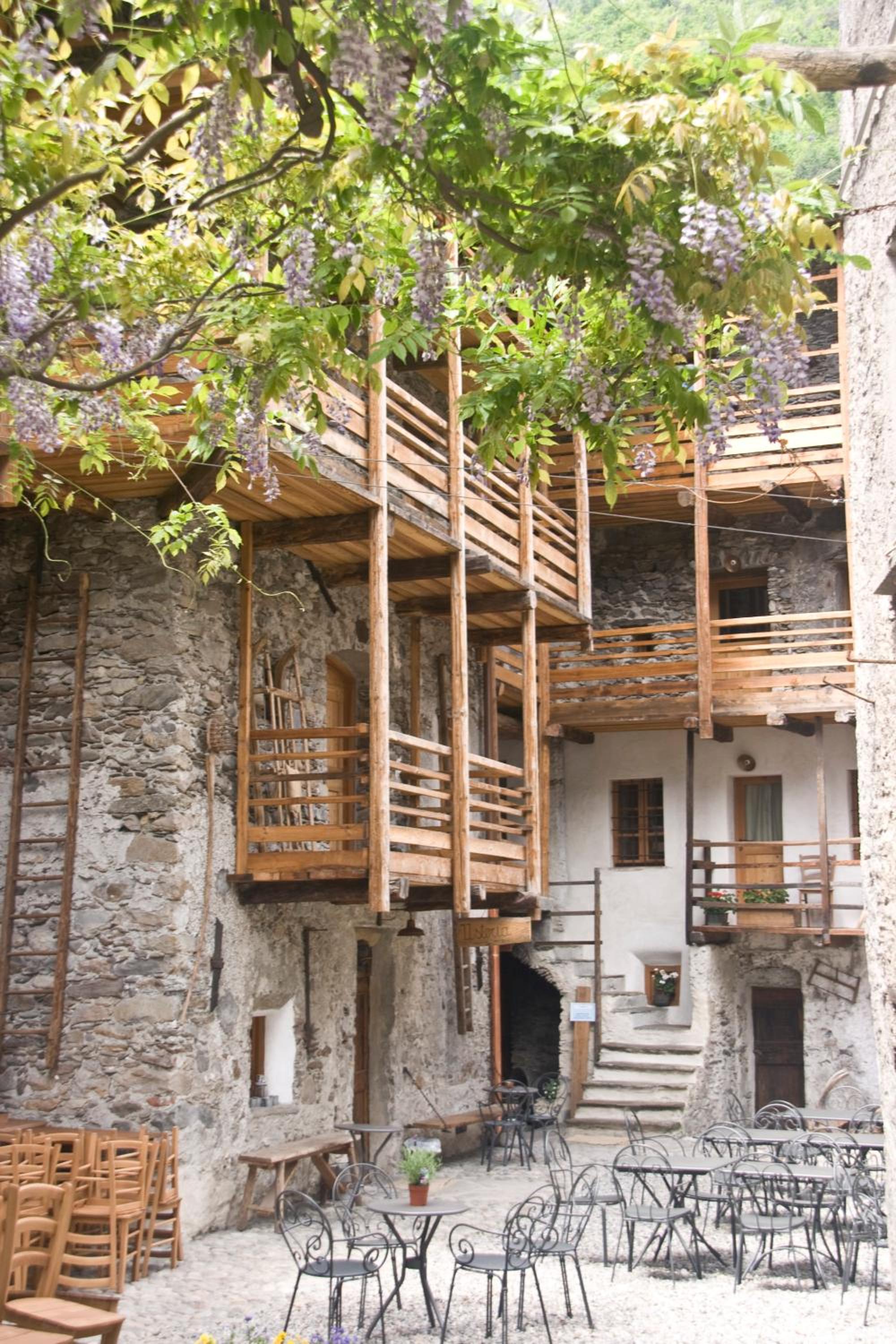 Отель расположен у подножья гор ,в низине ,вокруг виноградники и прекрасные виды на заснеженные вершины Альп .Очень впечатляющее здание ,старинное каменное поместье с внутренним двором ,деревянными лестницами ,уютным стилизованным под средневековье интерьером !Очень чисто,комфортно ,тепло !Гостеприимные хозяева и дружелюбный персонал !Очень хороший ресторан предлагает блюда и вина данного региона (Валтеллина )по нормальным ценам .